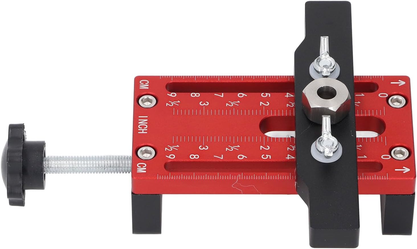 1. Cabinet Door Mounting Jig: Cabinet door installation locator with integrated jig is suitable for framed or frameless cabinets. When installing cabinet doors, you can use this jig tool for support, locating, and leveling 2. Quick and Simple: This locator features sturdy aluminum support arm and clamp, allowing you to grip the door with one hand while connecting the hinge with the other hand, making cabinet door installation effortless 3. Adjustable Arm: The dual metal rod of the jig provides stability and accurate locating for your cabinet door, adjusting the height of the support arm within a range of 2‑1/2 inch to place the door in the position you want 4. Applicable Range: This installation jig locator is ideal for kitchen cupboard, bathroom cabinet, wardrobe, etc. It is suitable for all door panels with a thickness of no more than 85mm, and meeting more installation needs 5. Aluminum Alloy: The cabinet door installation jig is made of excellent aluminum alloy, which has high strength, oxidation resistance, no deformation, and ensures strong load bearing. You can use it with confidence Specification: Item Type: Cabinet Door Installation Locator Material: Aluminum Alloy Drill Bit Size: 6mm, 8mm, 10mm, 12mm Up and Down Adjustment: Approx. 0-70mm / 0-2.8in Plate Clamping Thickness: Below Approx. 85mm / 3.3in How to Use: Install and use directly PackageList: 1 x Cabinet Door Installation Locator 1 x Clamp Block 2 x Nuts 2 x Screws 2 x Washers 4 x Drill Bits 4 x Drill Bushings 4 x Limiters 4 x Wrenches
