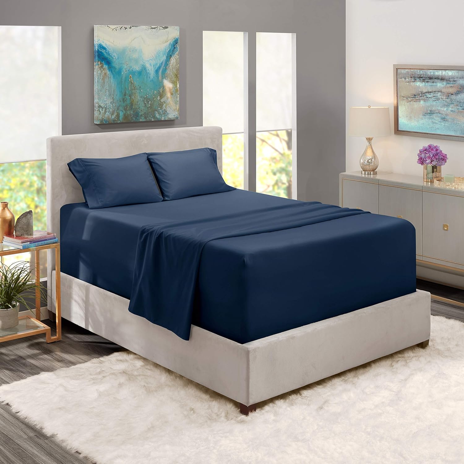About Us:Ultra Soft Pure Cotton 4 Pieces Bedding Sheet Set With 21" Deep Pocket (1 Top/Flat Sheet, 1 Bottom/Fitted Sheet & 2 Pillowcases).Give yourself a wondrous night's sleep with this luxurious cotton sheet set. The cotton sheets will envelop your bed in elegance and luxury at a more affordable cost. The fitted sheets are made fully-elastic to ensure a secure fit on mattresses up to 21 inches deep.100% extra long staple cotton for soft and crisp feel and 800 thread count for wonderful weight and thickness, breathable, comfy, and cool sheetsu ultra smooth, luxe sateen weave Sturdy, durable and easy to wash.We're committed to creating the most perfect home essentials. Crafted from 100% natural cotton, these sheets super soft, comfortable and cool to the touch. Designed for a snug fit, our elasticized fitted sheets have deep pockets for a neat and stay-put finish. They come with a head and foot label, so you don’t make the bed wrong ever again.