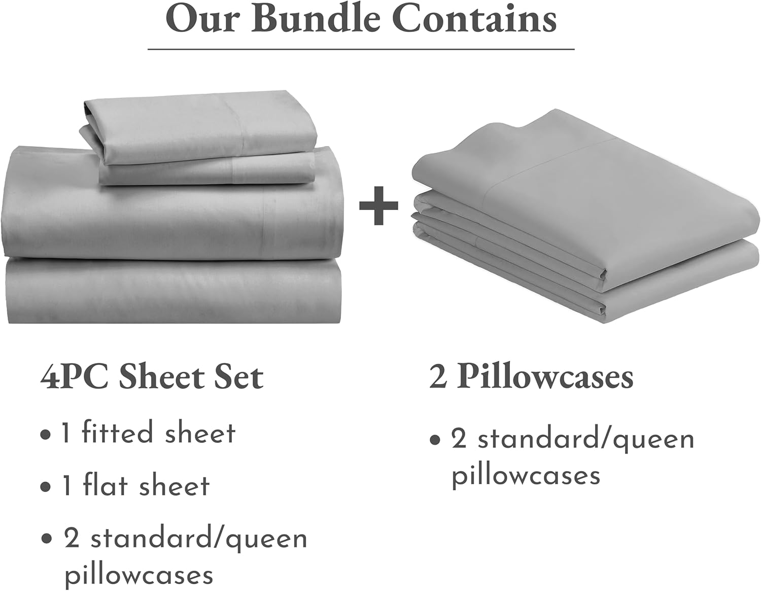 | Style Name | Queen Sheet Set with 4 Pillowcases (Light Grey) |