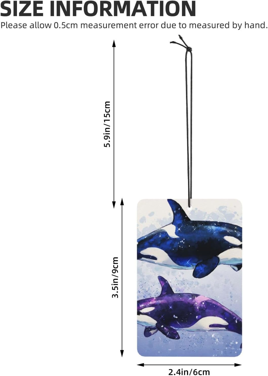 unobstructed vision: this Orca Killer Whale rearview mirror scented fresheners doesn't obstruct your vision while driving, ensuring a safe and comfortable journey every time.easy hang: we've included a convenient rope for hanging, making it super easy to attach this christmas air freshener wherever you prefer. No fuss, no mess - just hang and enjoy the fragrance.incredible package deal: this rearview mirror pendant aromatherapy tablets package includes 6 pieces in 6 captivating designs and 1 refreshing scents (lavender). Experience a variety of delightful fragrances that will keep your surroundings smelling wonderful throughout the day.environmental protection: the car air fresheners for women smell can last for about 1-2 weeks. When the smell fades, you can add your favorite perfume. Continue to use, reusable6 pcs included: you will receive 5 individual shoe cabinet fresheners, each in its own package; enjoy consistent scents for nearly a year, or share them with your friends or families