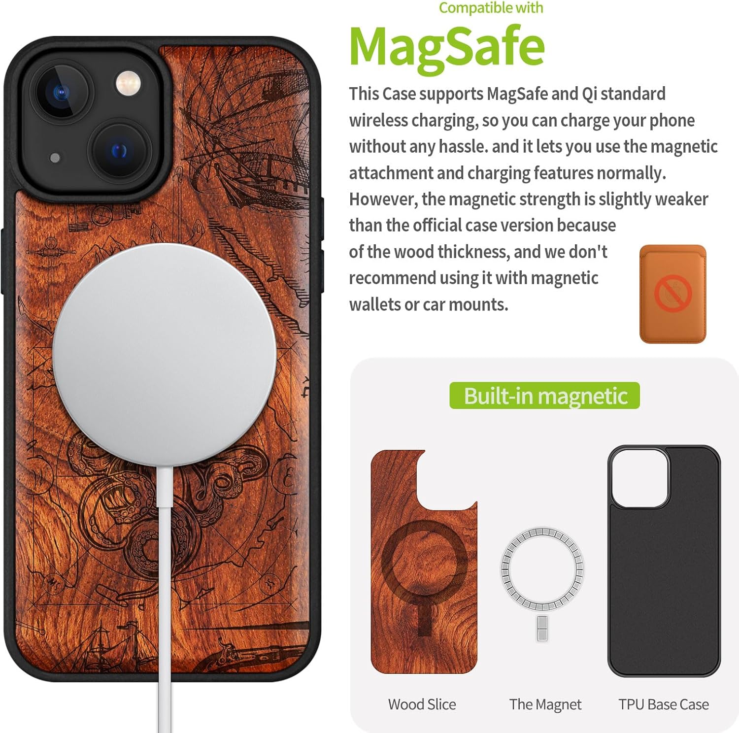 | Additional Features | Natural solid wood back panel and laser engraving, The unique solid wood keeps the palm dry and prevents fingerprints from sticking to the surface of the case, keeping it clean and elegant |
