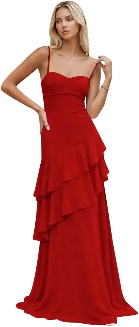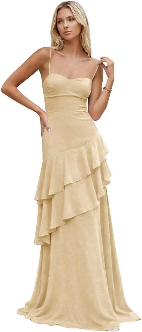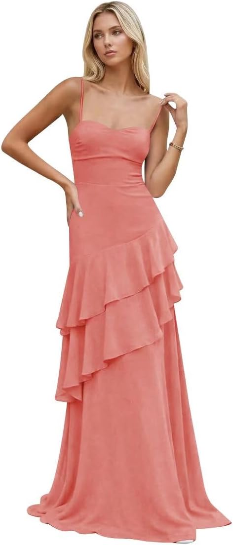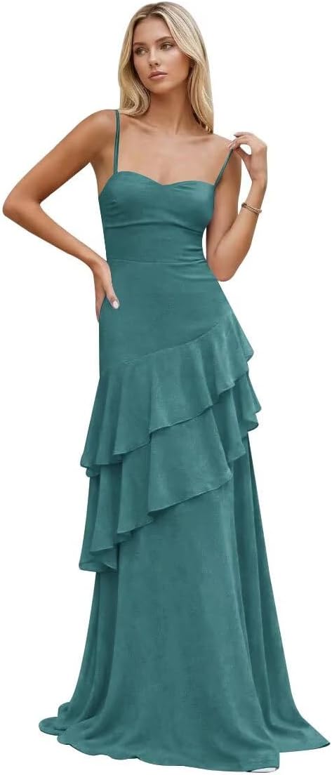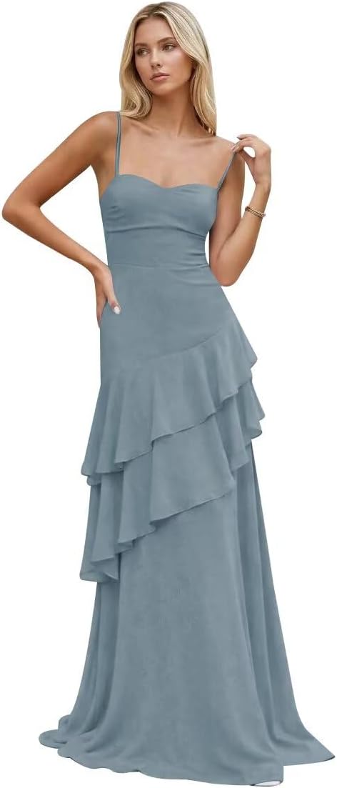 | Embellishment Feature | Chiffon Bridesmaid Dress, Chiffon Prom Dress, Long Formal Dress, Spaghetti Straps Evening Dress |