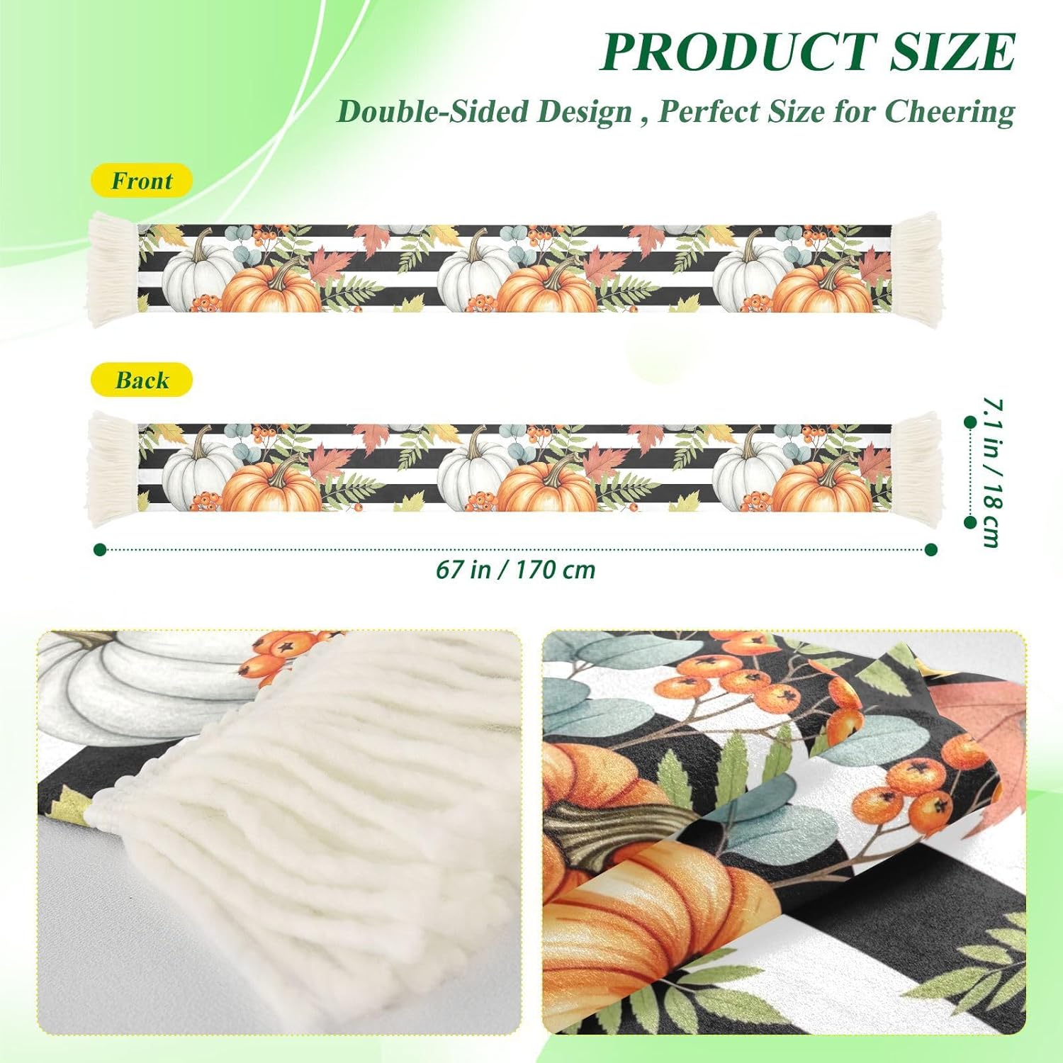 Whether you are cheering from the stands or gathering with fellow fans, this sports fan scarf towel is built to keep up with your energy. Crafted from 100% polyester quick-dry fabric with a soft brushed texture, it sits comfortably against your skin while absorbing sweat during even the most intense moments of the game.At 70 x 7 inches, this soccer scarf gives you plenty of room to show off bold graphics and rally slogans. The fringed ends add a lively finishing touch, making it eye-catching whether draped over your shoulders or raised high in the air. Bright, vivid prints stay sharp wash after wash thanks to color-fast printing technology.This fan cheering towel scarf is a addition to any game day kit. Take it to soccer matches, sports events, pep rallies, or community gatherings. It doubles as a sweat towel and a display banner, giving you two functions in one lightweight accessory.Looking for a thoughtful gift for a sports fan? This scarf makes a fun and practical choice for birthdays, holidays, or any celebration. It is also well-suited for group events where coordinated cheering gear can make a real impact.Care is simple: machine wash gently in water under 40 degrees C, or hand wash as needed. Do not use bleach or dry clean. Iron on low if needed.
