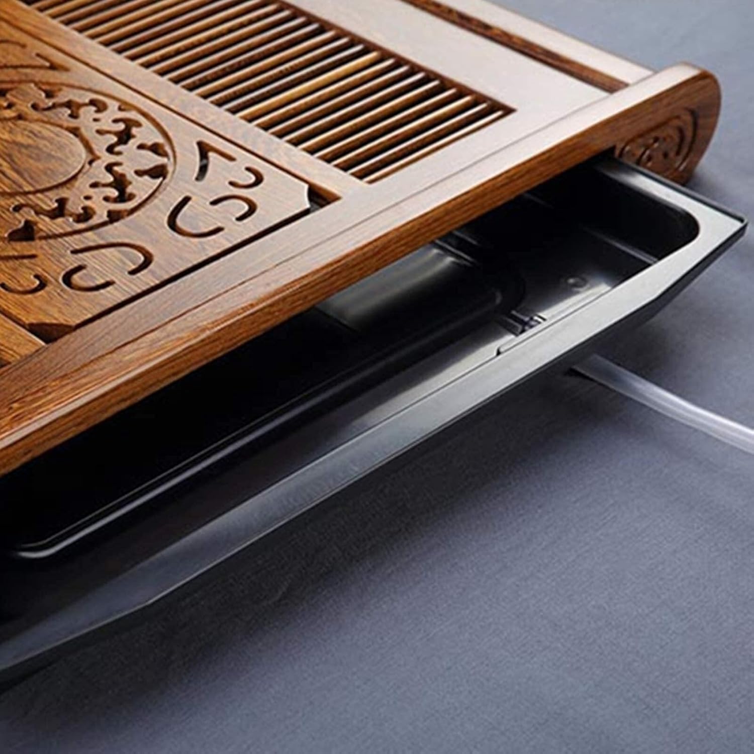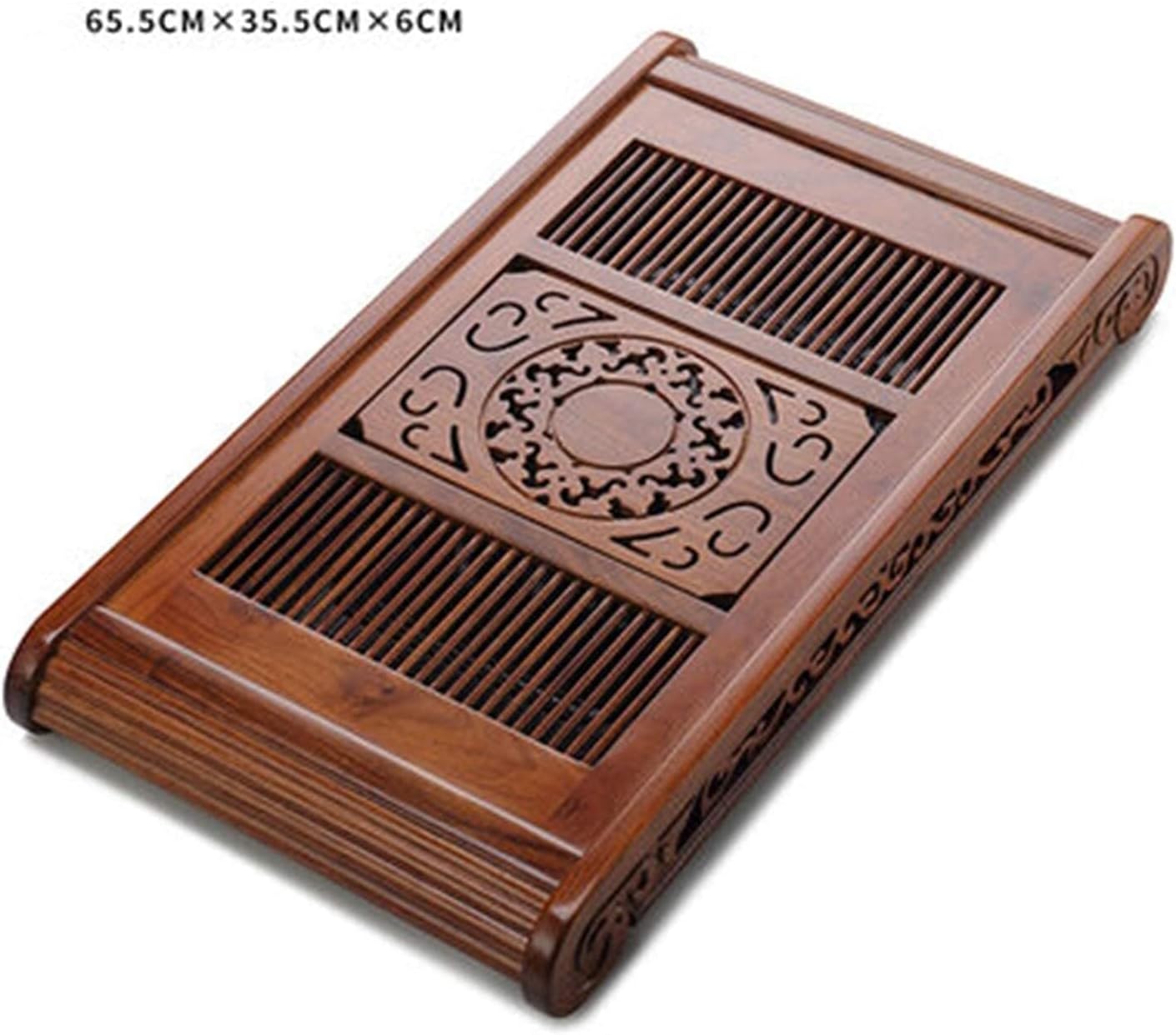 Elevate your tea experience with this Chinese Gongfu Tea Tray, made from solid Wenge wood and rosewood. The tray is expertly to provide an elegant and surface for your Gongfu tea ceremonies. Designed with functionality in mind, the tray features a removable slatted top that allows water used to rinse teapots, cups, and tea leaves to drain through the holes and collect in the water basin below. This keeps your tea setup neat and clean, providing a mess brewing process. Measuring 65.5 x 35.5 x 6 cm, this spacious tea tray offers ample room for your teapot, tea cups, and other accessories. Whether you're hosting a tea gathering or enjoying a quiet tea tasting, this tray provides the perfect setup. The polished surface is smooth and easy to clean, while the elegant design adds a touch of sophistication to your tea space. This solid wood tea tray is not just a practical tool but also a beautiful decoration for your home, office, or tea room. Whether you're a tea enthusiast or looking for a thoughtful gift for someone who loves tea, this tea tray is an choice. Specifications: Material: Wenge wood, Rosewood Size: 65.5 x 35.5 x 6 cm Color: Wenge Wood, Rosewood Package Includes: 1 x Tea Tray Note: Allow for slight measurement differences (0-2 cm). The color displayed may differ slightly due to monitor settings. Perfect for Tea Ceremonies: Ideal for Gongfu tea brewing, this tray adds a touch of elegance and practicality to your tea rituals.