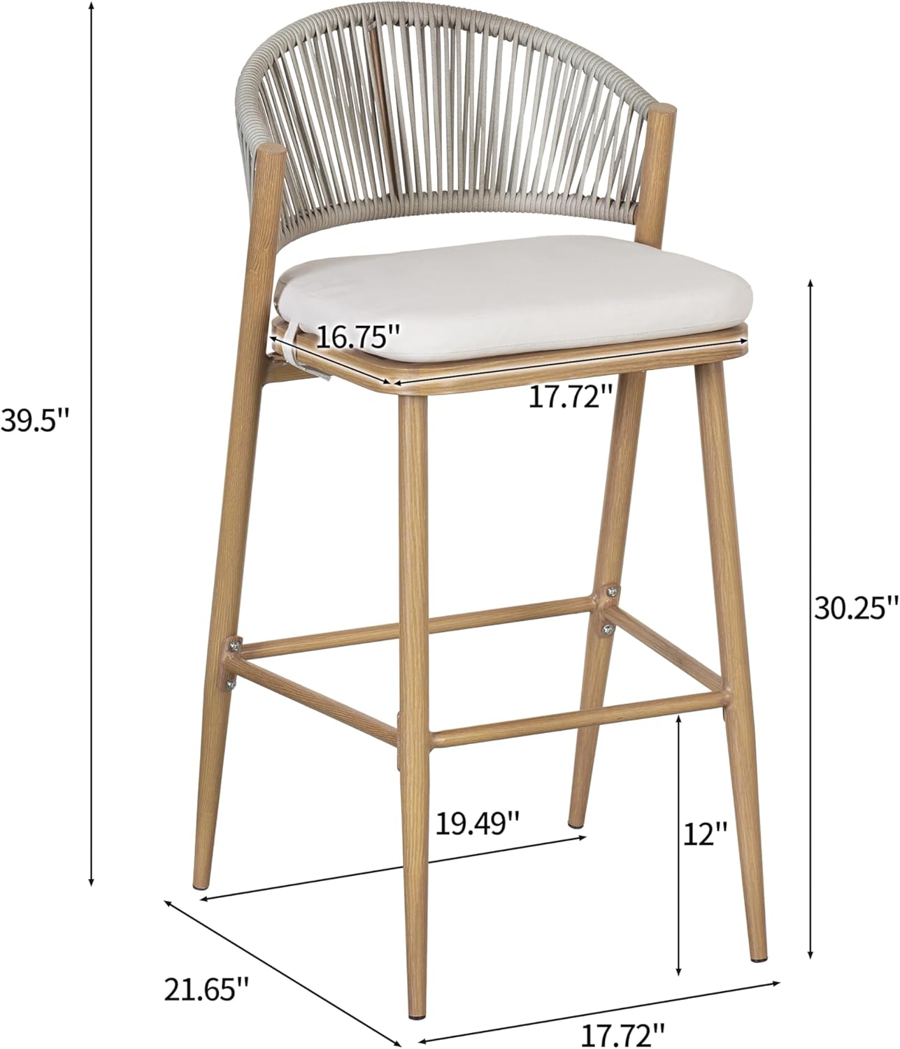 Introducing our outdoor barstools, the perfect addition to your outdoor entertaining space. Crafted with durable metal frames, these barstools are designed to withstand the elements and provide long-lasting support. The water-resistant cushions ensure maximum comfort, allowing you to relax and unwind in style. The sleek and modern design of the barstools effortlessly complements any outdoor decor, making them a versatile and practical choice for your patio, deck, or poolside area. Whether you're hosting a barbecue with friends or enjoying a quiet evening outdoors, our outdoor barstools will elevate your outdoor experience with their comfort, durability, and timeless appeal.Material: AluminumBarstools Set of 2Multiple Color OptionsAssembly RequiredWoven Wicker Back