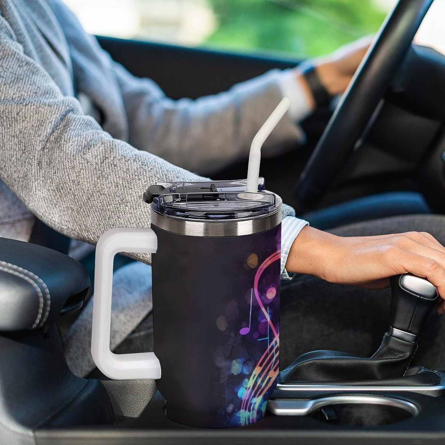 The simple tumbler is double walled and vacuum insulated to keep your drink hot or cold for hours.The cup is outfitted with an ergonomic handle, that is aesthetically designed for comfort. It comes with a straw lid and a straw so you can enjoy your favorite beverage on the go.The bottom of the cup is conveniently sized to fit car cup holders for easy portability. Fill your insulated tumbler with coffee, sweet tea, ice water, milkshakes, juice, cocktail, lemonade and more!If you are looking for the perfect birthday or holiday gift, don't miss this one. It can be a surprise gift for women, friends, family, couples.If you have any questions during your purchase or gifting process, please reach out to us—we're happy to help!