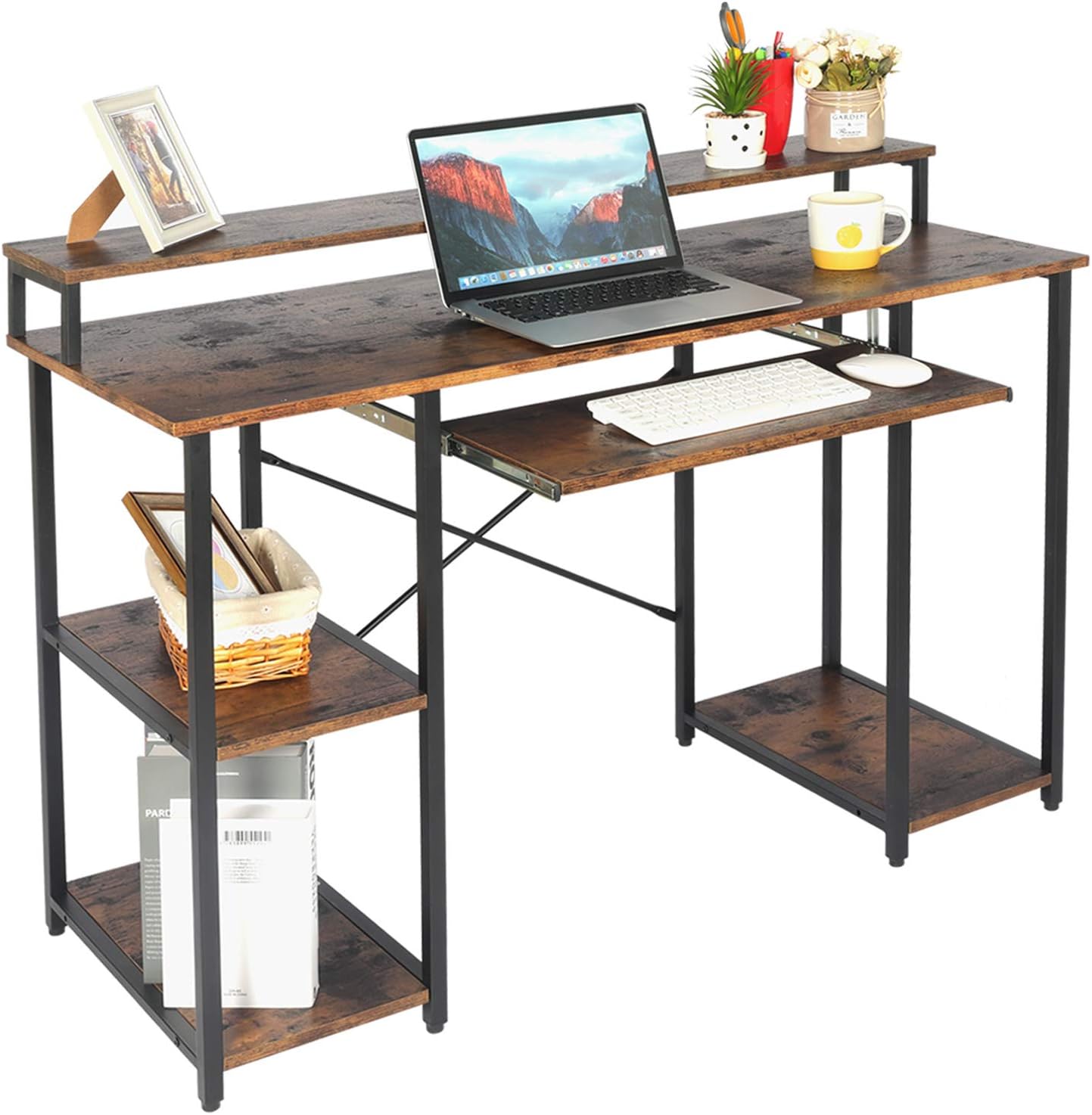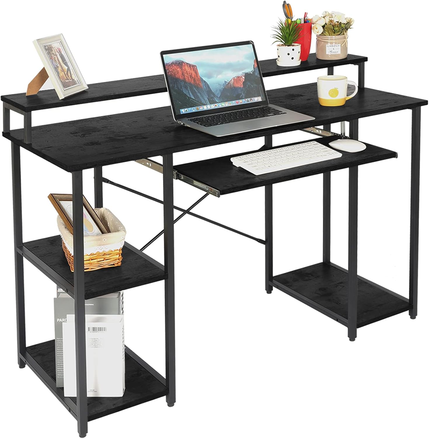 HROOAREM Computer Desk with Hutch Our computer deskfeatures a silent sliding keyboard tray, lower shelves for CPU, and two moreopen shelves for storage. Features ·?SmoothSurface ·?HelpfulOpen Shelf ·?Lightweightand flexible keyboard tray ·?Computerdesk sturdy and stable back X design ·?Extramonitor stand and desktop experience that feels great ·?Sturdy black metal bracket Specifications Material: P2 Class Board Product Overall:46.5L x 19Wx 34.2 H/118cm 48cm 87cm Monitor Stand: 46.5(L) x 7.8 (W)/118x20cm Height from Floor to the Desktop: 30/76cm Height from Floor to the Keyborad Tray: 26.3/67cm Keyboard Tray: 22.4(L)x 9(W) /57x23cm Overall Product Weight: 22.00kg/47.00lbs Overall weight capacity: 200 lbs Package includes 1 X Computer Desk 1 X User Guide &nbs