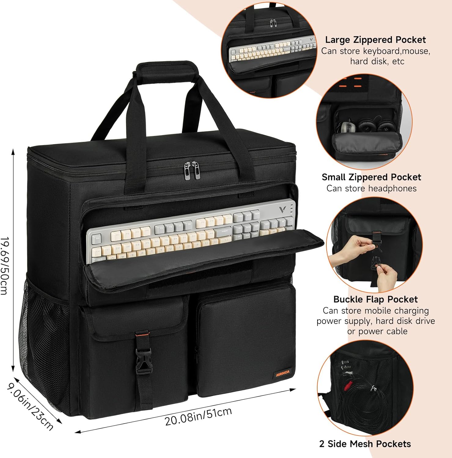 Computer Desktop Tower Large Carrying Case, PC Travel Case Backpack for ATX Mid-Tower Desktop Computer, Padded Portable Bag with Adjustable Straps for LAN Parties and Office Move