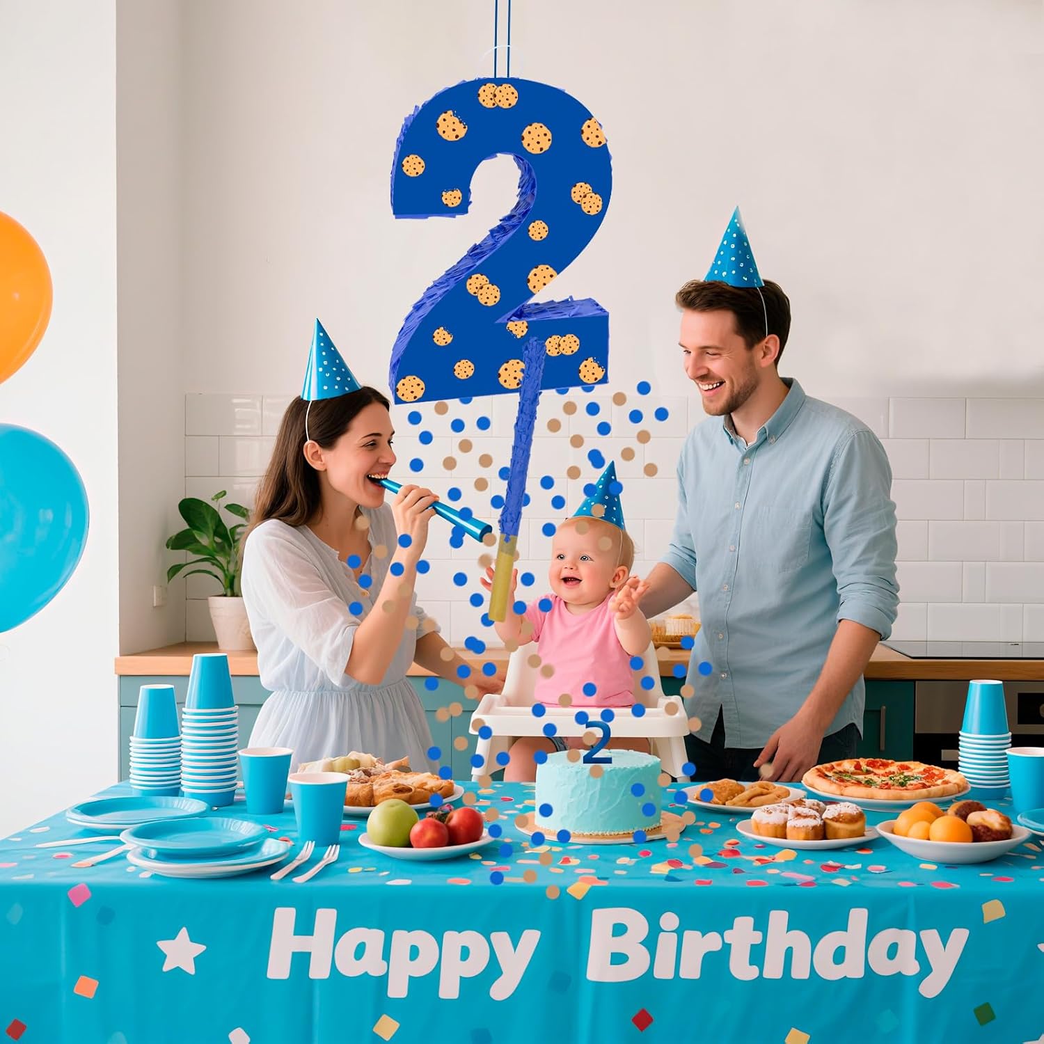 Cookie 2nd Birthday Decorations, Cookie Number 3 Piñata with Blindfold Stick and Confetti for Cookie Birthday Party Supplies