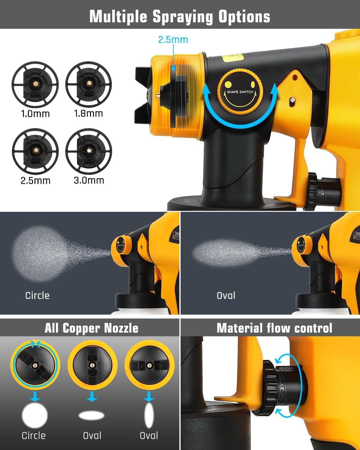 | Included Components | 1 x Cleaning Kit, 1 x Paint Filter Kit, 1 x Paint Sprayer Gun, 1 x User Manual, 3 x Replacement Nozzles(1.0/1.8/2.5/3.0mm) |