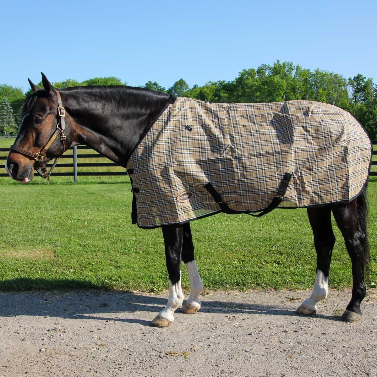 The Country Pride Protective Textilene Fly Sheet offers durable, breathable protection against flies and insects, making it an essential addition to your horse’s turnout or stable gear. Crafted from strong textilene mesh, this fly sheet provides full coverage while allowing airflow to keep your horse cool and comfortable. The double buckle open front ensures easy adjustment for a secure fit, while bias surcingles and adjustable/removable elastic hind leg straps keep the sheet in place during activity. Reinforced stitching and high-quality hardware enhance durability, making this fly sheet a reliable and long-lasting choice for everyday use. Finished in a stylish black and tan plaid, it combines functionality with classic style.