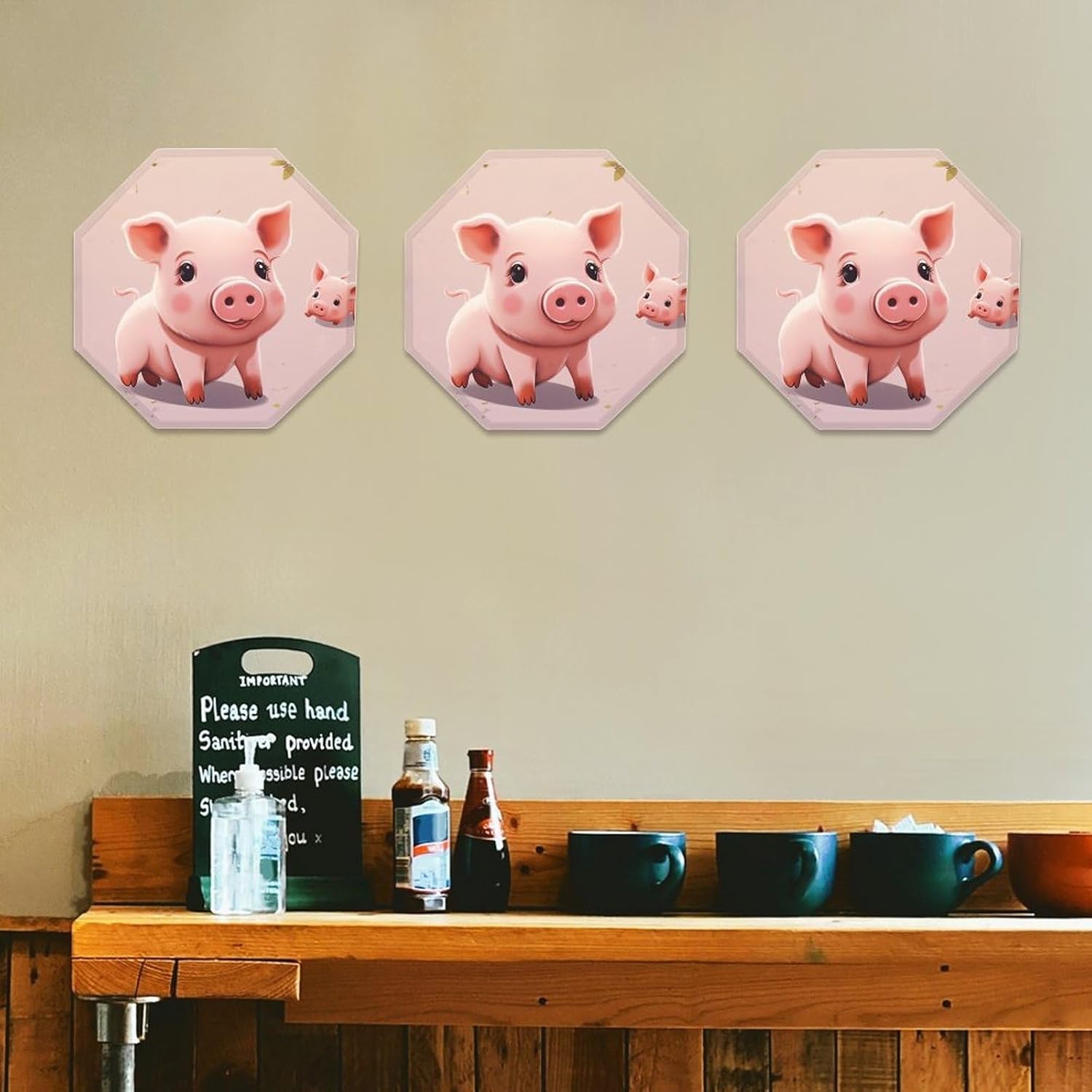 This modern abstract wall decoration brings a luxurious feel to your walls, creating a stylish home décor. It can be easily installed on any blank wall, adding texture and depth to your home.Personalized signs are perfect for kitchens, bathrooms, doors, garages, TV walls, living rooms, and other spaces. They can be hung in living rooms, bedrooms, hallways, offices, meeting rooms, and waiting areas. Use them on manhole covers, partition walls, or any other small, unique sign you desire.Our octagonal iron plate is the perfect gift because each of our octagonal iron Cute Pig plates features a unique pattern, suitable for any occasion. The unique pattern adds a distinctive touch.Come and choose the decorative mural that suits you best!