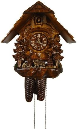 Colour: Walnut Executions: Classic Wooden dial, wooden hands, wooden bird, and night shut off 2 years product warranty Sound The cuckoo calls every half hour once and the number of the hours every full hour. This cuckoo clock has an exclusive life-like wooden handpainted cuckoo. With certificate of authenticity from the Black Forest Clock Association (VdS). It has a mechanical extreme long-life rack strike movement. It allows turning the hands left and right without endangering the mechanics of the movement. The 8 day running time movement need to be wind up once a week, that means you pull on the chains until the weights are up. The size refers only to the clock, without pendulum and weights.