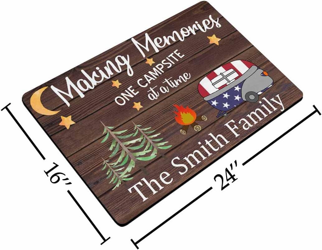 Our designers aim to offers stylish designs determined to add personality to entryway & RV entrance decor. Show your friends mom dad grandparents daughter son campers how cute this unique mat is! This soft touching doormat is suitable for any occasions, like Wedding, Mother's day, birthday, Thanksgiving Day or Christmas xmas day gifts for friends or family members Rv owner. Soft touching on bare feet. Perfect Size: This doormat measures 16x24". Come in a perfect sizes plcae for indoor and outdoor use. Cleaning instructions: For simply daily clean, shake off outdoors or over your garbage bin or use a hand-held vacuum, sweep with a broom. For a deeper clean, wipe with a damp cloth and mild soap, or use a garden hose to rinse the mat outdoors. Allow your mat to fully air dry before next use. Machine bleach washing is not recommended.