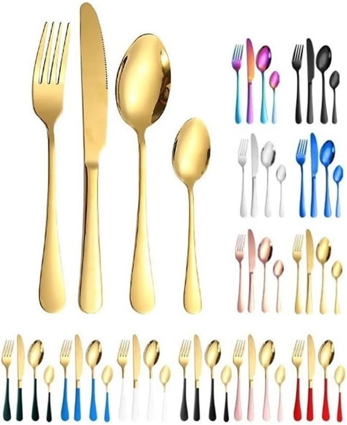 FEATURESStyle: personalised, customizedMaterial: stainless steelPolishing process: mirror polishingColor: Silver, Gold, Rose Gold, Rainbow, Black, Black Gold, Red Gold, Green Gold, Blue Gold, Pink Gold, White GoldLIST: 4Pcs includes 1*dinner knife, 1*dinner fork, 1*dinner spoon, 1*tea spoon16Pcs includes 4*dinner knife, 4*dinner fork, 4*dinner spoon, 4*tea spoon24Pcs includes 6*dinner knife, 6*dinner fork, 6*dinner spoon, 6*tea spoon32Pcs includes 8*dinner knife, 8*dinner fork, 8*dinner spoon, 8*tea spoon40Pcs includes 10*dinner knife, 10*dinner fork, 10*dinner spoon, 10*tea spoon48Pcs includes 12*dinner knife, 12*dinner fork, 12*dinner spoon, 12*tea spoonAbout SENIDIKESENIDIKE is dedicated to designing innovative and practical home gadgets. We strive to enhance your home life by delivering thoughtful designs combined with strict quality control. Our mission is to meet the needs and expectations of every customer with reliable products and excellent service.