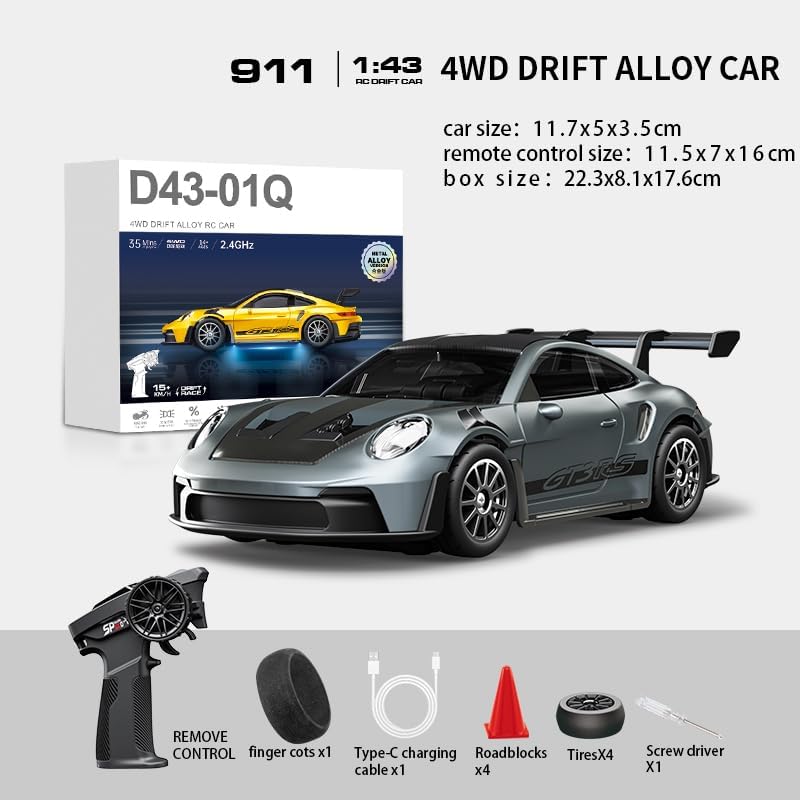 .Remote control * 1 .Remote control handle * 1 .Charging cable * 1 .Roadblocks * 4 .Spare tires * 4 .Screwdriver * 1