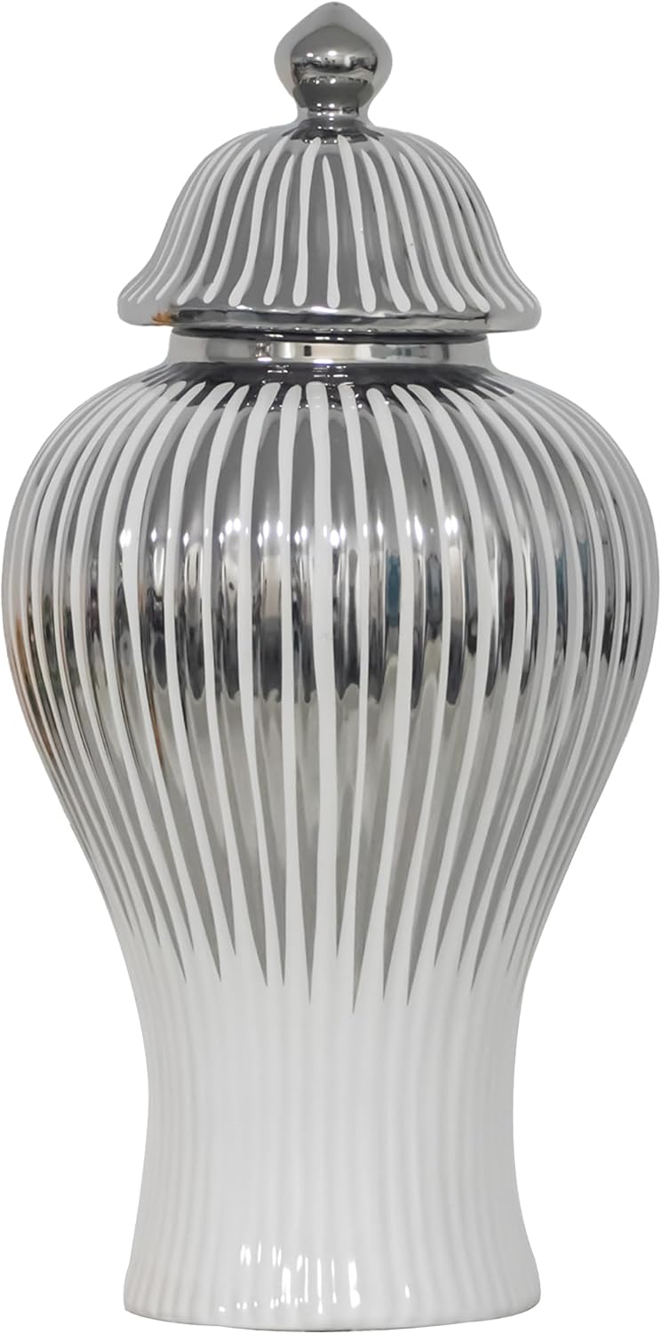 Decorative ceramic ginger jar with lid storage jar Table center vase, decorative ceramic vase for home decor (white, small)