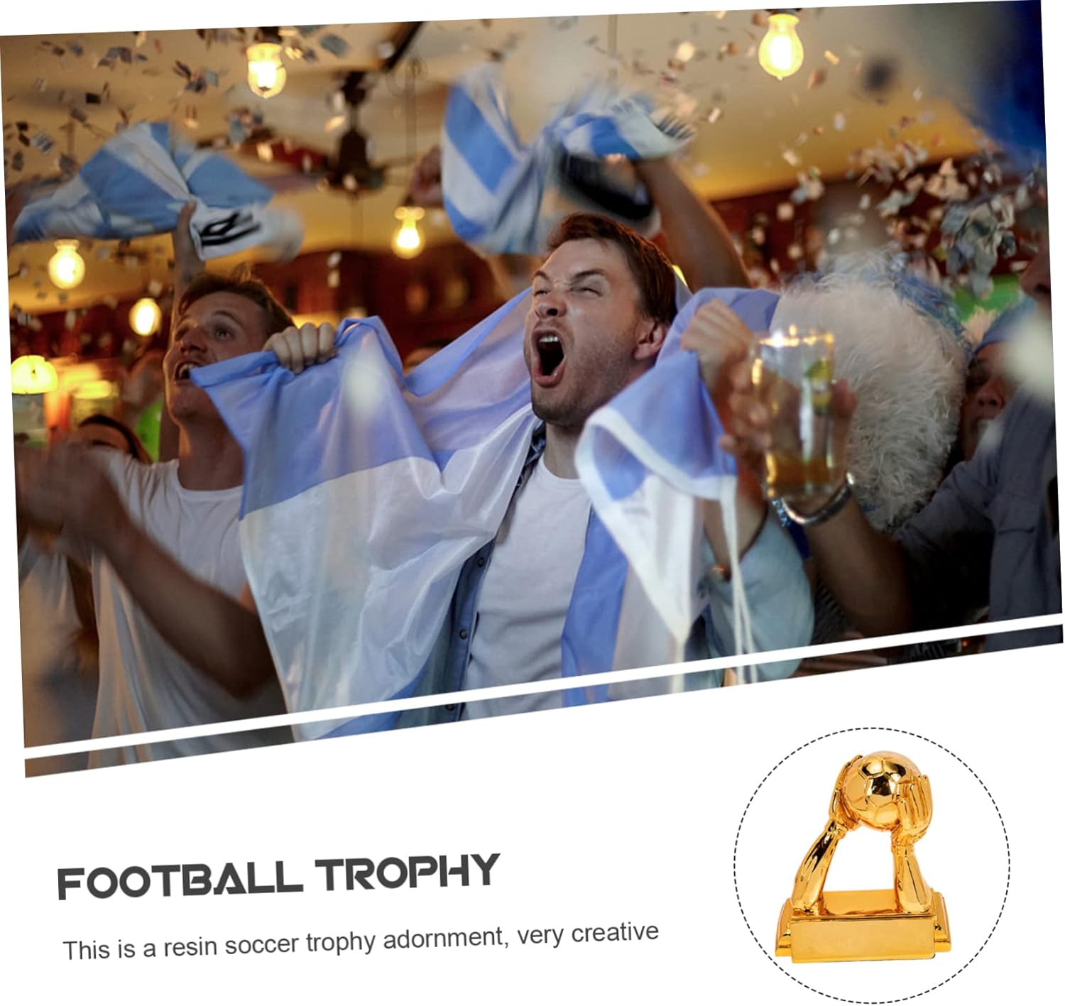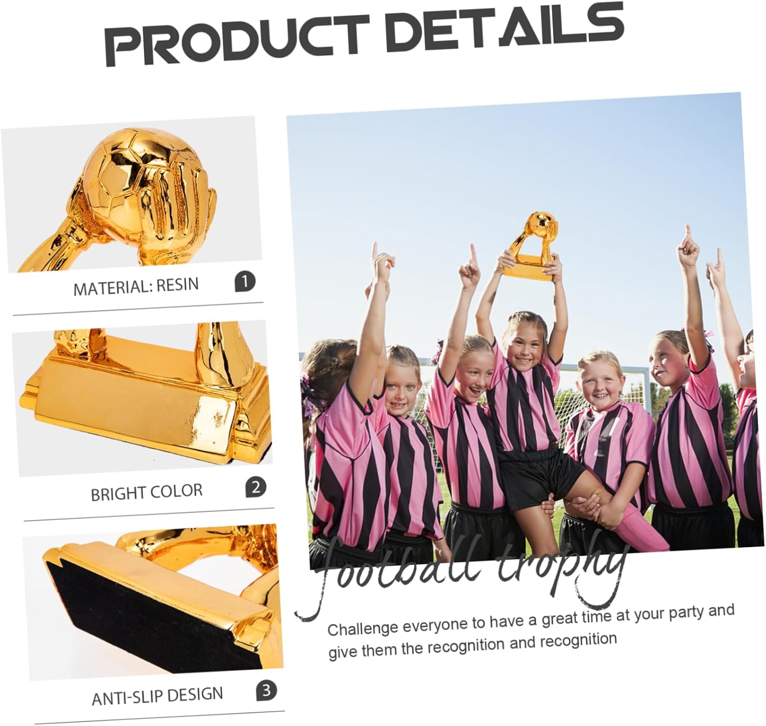 Package List 1 x Trophy Features -Material: Resin Football Trophy -Size: 14.00X14.00X6.00cm/5.50X5.50X2.36in Soccer Trophy -Color: Golden Soccer Trophy -Whatever the game is, your guests with a resin soccer trophy! Decorative Trophy Adornment -Great for costume or prop, this little trophy is a any office party theme Resin Trophy Adornment. -You can deserve through this eye-catching trophy to decorate your home Soccer Competition Prize. -It is soccer fans or soccer enthusiasts, very attractive and decorative Decorative Trophy Decor. -Its small size and light weight make it an ornament, costume or movie prop Competition Accessory.Goods Descriptionsoccer gloves A trophy is a symbol of success and represents an all-out effort, both physical and mental.football team awards Use this creative football trophy to reward your students, let them go farther and farther on the road of loving football, and enjoy the sweat of loving football