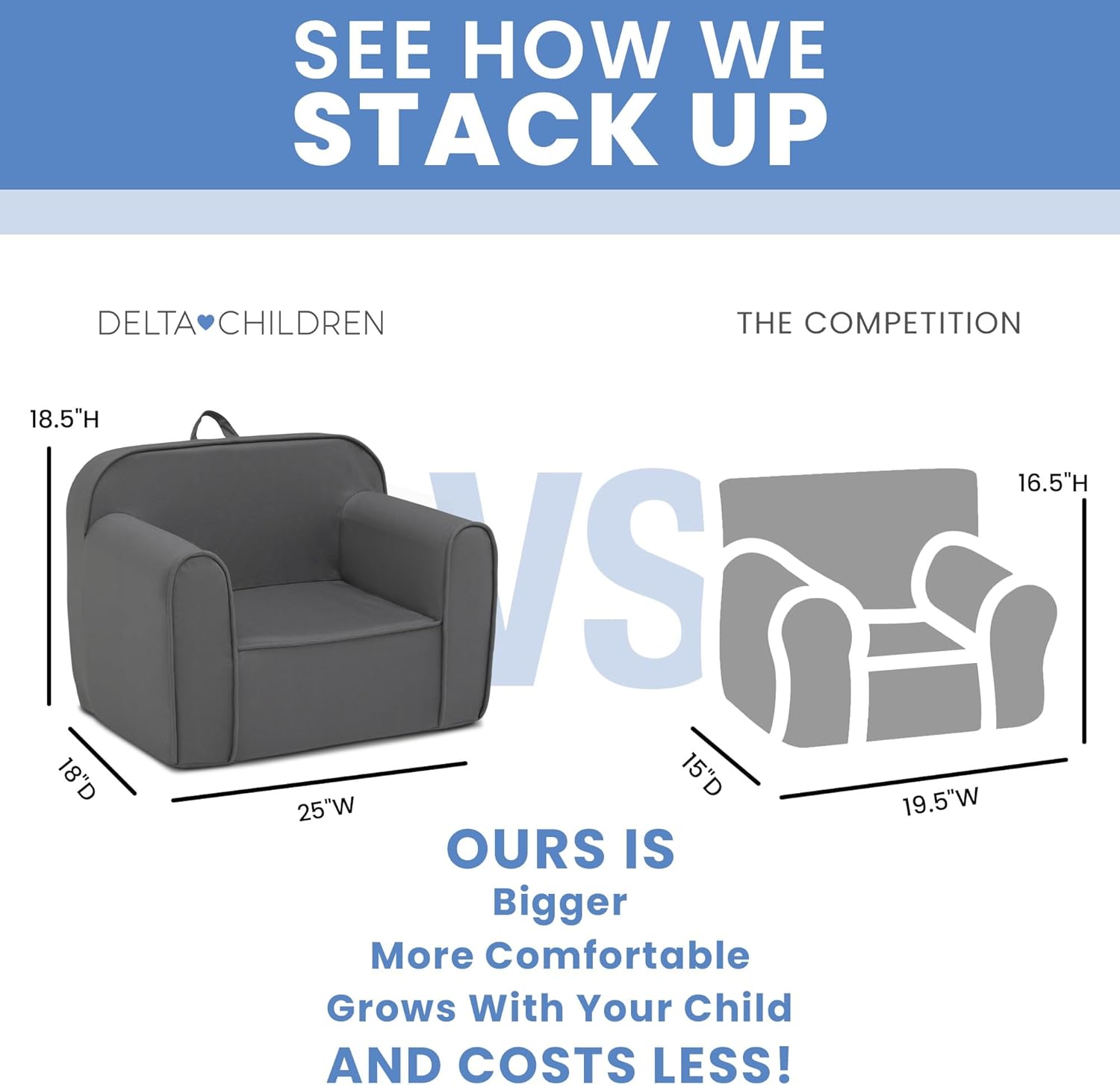 Right-size seating designed just for them, the Foam Cozee Chair by Delta Children will go anywhere they do. Perfect for the playroom, living room or your child's bedroom, this cozy foam chair is lightweight enough to move from room to room. The slipcover is constructed of soft fabric that's removable and machine washable for easy cleaning. Recommended for ages 18 months+. Delta Children was founded around the idea of making safe, high-quality children's products affordable for all families. They know there's nothing more important than safety when it comes to your child's space. That's why all Delta Children products are built with long-lasting materials to ensure they stand up to years of jumping and playing. Plus, they are rigorously tested to meet or exceed all industry safety standards.