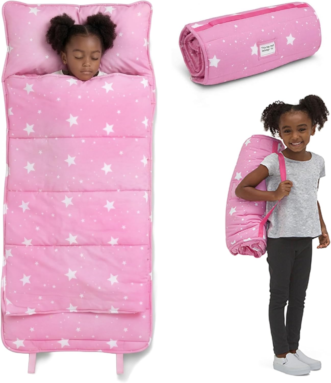 | Included Components | Delta Children Personalized Nap Mat with Pillow & Blanket for Toddlers & Kids - Features Carry Handle & Name Tag - Ideal for Preschool/Daycare - Customize with Child’s Name, Space |