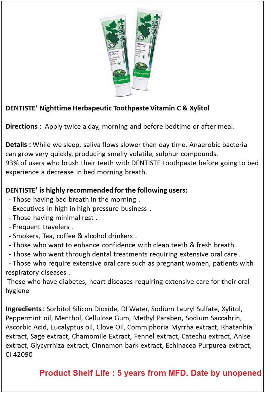 2 X 100g Dentist Dentiste Plus White Whitening Vitamin C Xylitol Gum Toothpaste