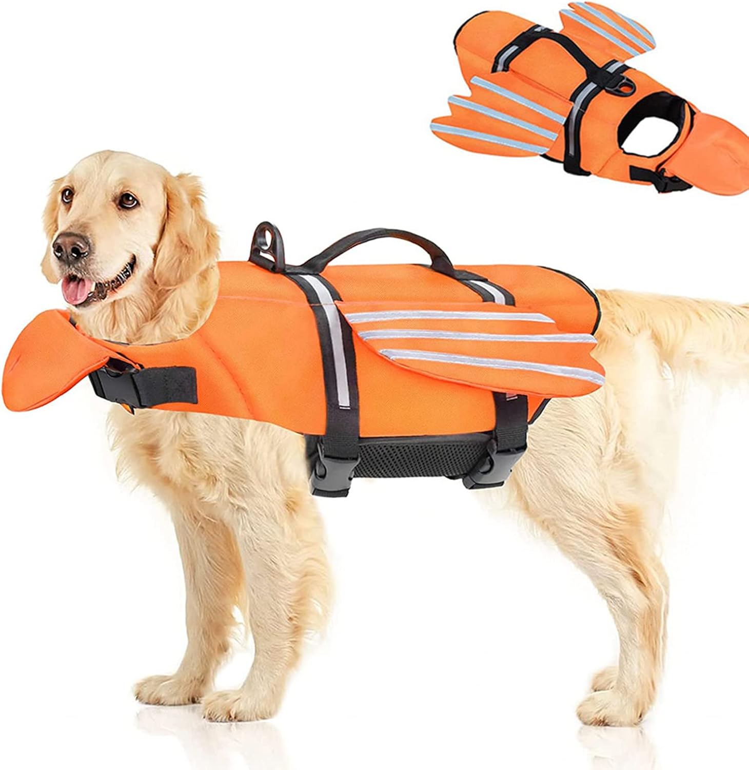 If you are planning a beach trip or swim activities with your furry friends, do not miss this stylish dog life jacket. It will keep your dog safer in water while they are enjoy swimming.Features of this Dog Floatation Lifesaver:1.Premium oxford cloth, abrasion resistant and dirt-proof, Effectively.2.keeps your dog safe when having fun in the water.3.Pet safety preserver is featured with high quality easy-grab handles, quick release buckles, and outstanding flotation.4.The handle design of the dog swimsuit is constructed to add strength and durability for pulling dogs out of the water.The First Time - How to help keeps dog safe in the water?Not every dog is good at swimming , such as French bulldog, Corgi, DachshundStep 1: Before you let the dog into the water, Fasten the dog leash first, you can keep the dog under control.Step 2: Guide the dog in shallow water and let the dog get used to moving in the water.Step 3: After the dog gets used to it, take it to the deep water area.Step 4: Pet owners should encourage their dogs to make them adapt faster.How to Select a Suitable Size for Your Puppy?Step 1: find a tape measure or string & rulerStep 2: measure your dog's Ribcage Girth at the LARGEST partStep 3: Choose a size by referring to SIZE CHART in product picture Note:Chest meaurement is decisive, then is dog weightDo NOT judge your dog's size from other brands' standardIf your dog's measurement is between sizes, please choose the next size up