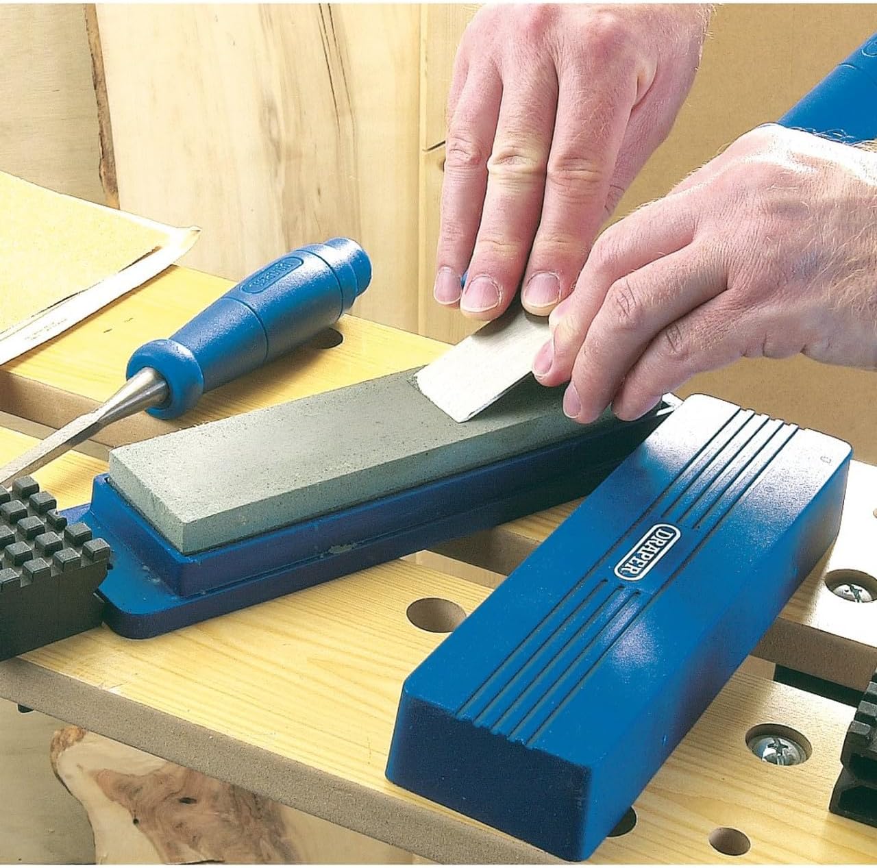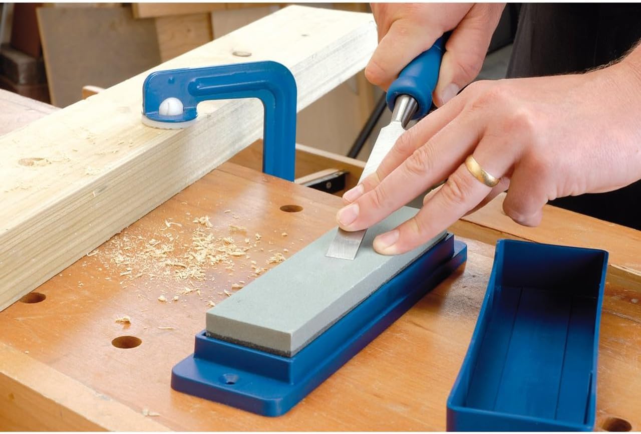 Comprising Stock No. 65737 Sharpening Stone with fine and medium sharpening surfaces and Stock No. 29520 impact resistant Sharpening Stone Box.