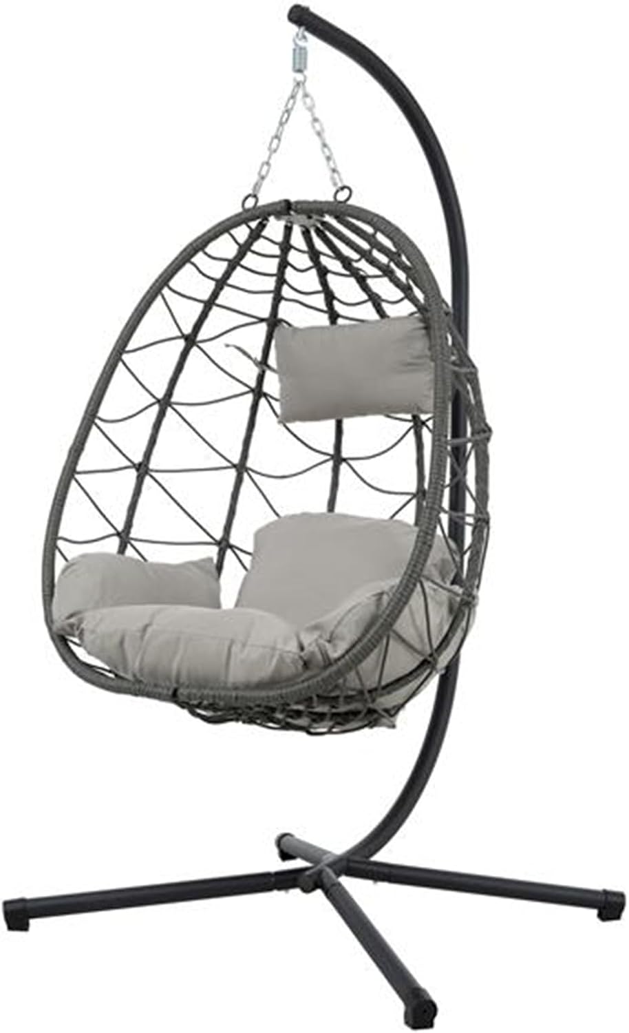 Color: Dark Grey Material: PE Wicher, Metal Tube, Plastic End Cap. Product Dimensions: W38.6*D36.2*H76.8 INCHES Weight :47.4 lb The frame is made of metal tube, with PE wicker rattan, Polyeter Fibre Hand woven. the cushion stuffing is polyester fiber, it can support long time crash.