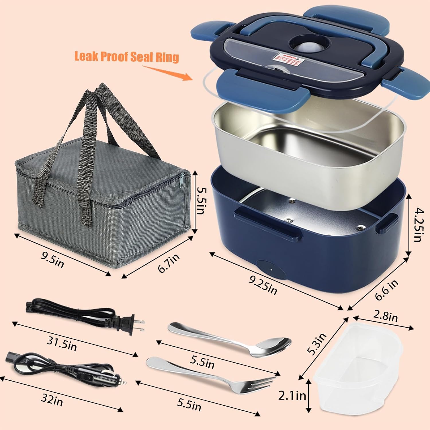 | Included Components | 1 x 80W Electric Heating Lunch Box, 1 x Car/Truck 12V124V Cable & 1 x Home/Ofice 110V/230V Plug, 1x 0.45L Plastic Additional Compartment, 1x 1.5L 304 Stainless Steel Container & 1x 304 $Stainless $teel Fork & Spoon, Bag |