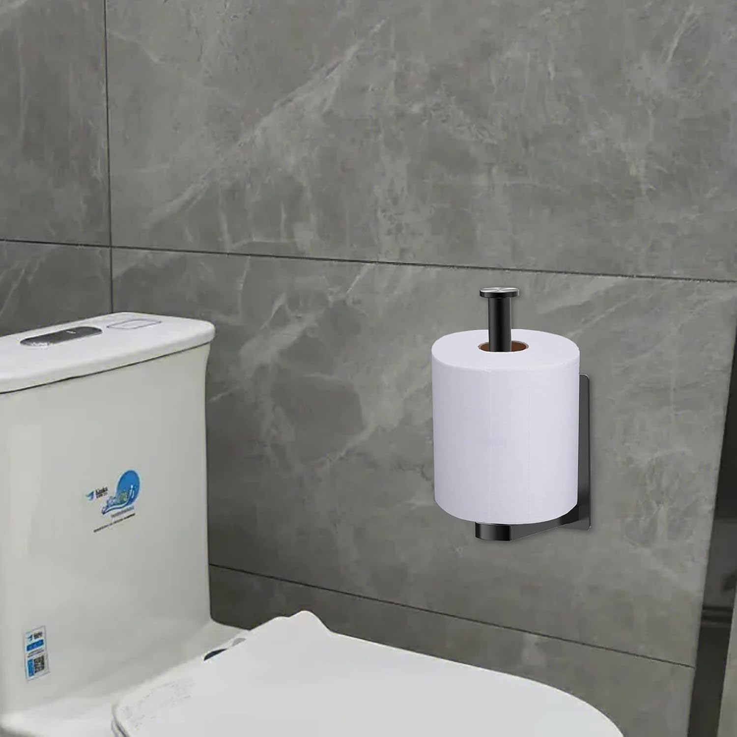 EMPAVA Self Adhesive Toilet Paper Holder - SUS304 Stainless Steel Rustproof No Drilling Paper Roll Holder stick on wall for Bathroom, Kitchen, Washroom, Black