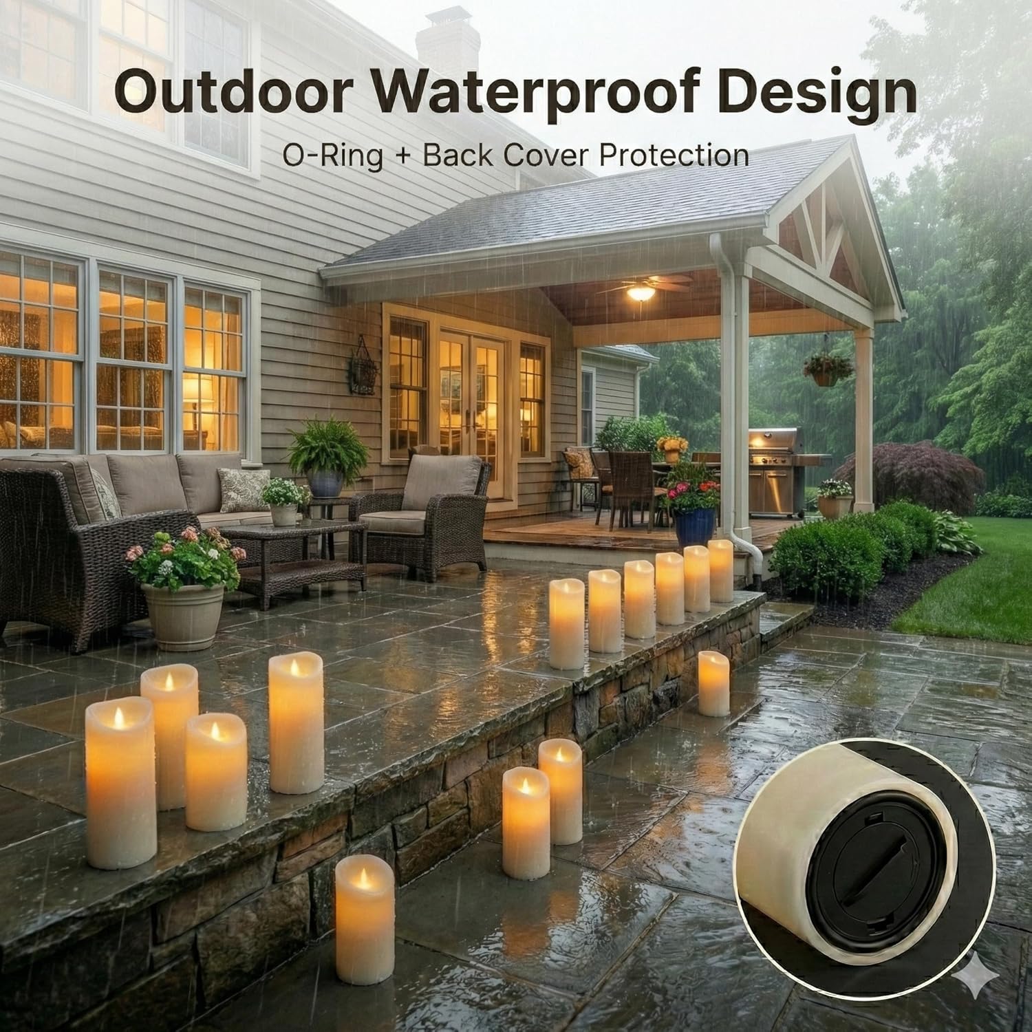 Create a warm and inviting atmosphere indoors or outdoors with this 12-pack of waterproof flameless LED pillar candles. Designed for convenient daily use, these battery operated candles feature a soft flickering glow, remote control access, and timer functionality, making them ideal for patios, covered porches, wedding centerpieces, fireplace mantels, bathroom décor, and holiday displays. Enjoy candlelight ambiance without open flames, smoke, dripping wax, or fire risk. Whether you are decorating for an event or upgrading everyday home styling, this set offers a safe, reusable, and low-maintenance alternative to traditional candles.