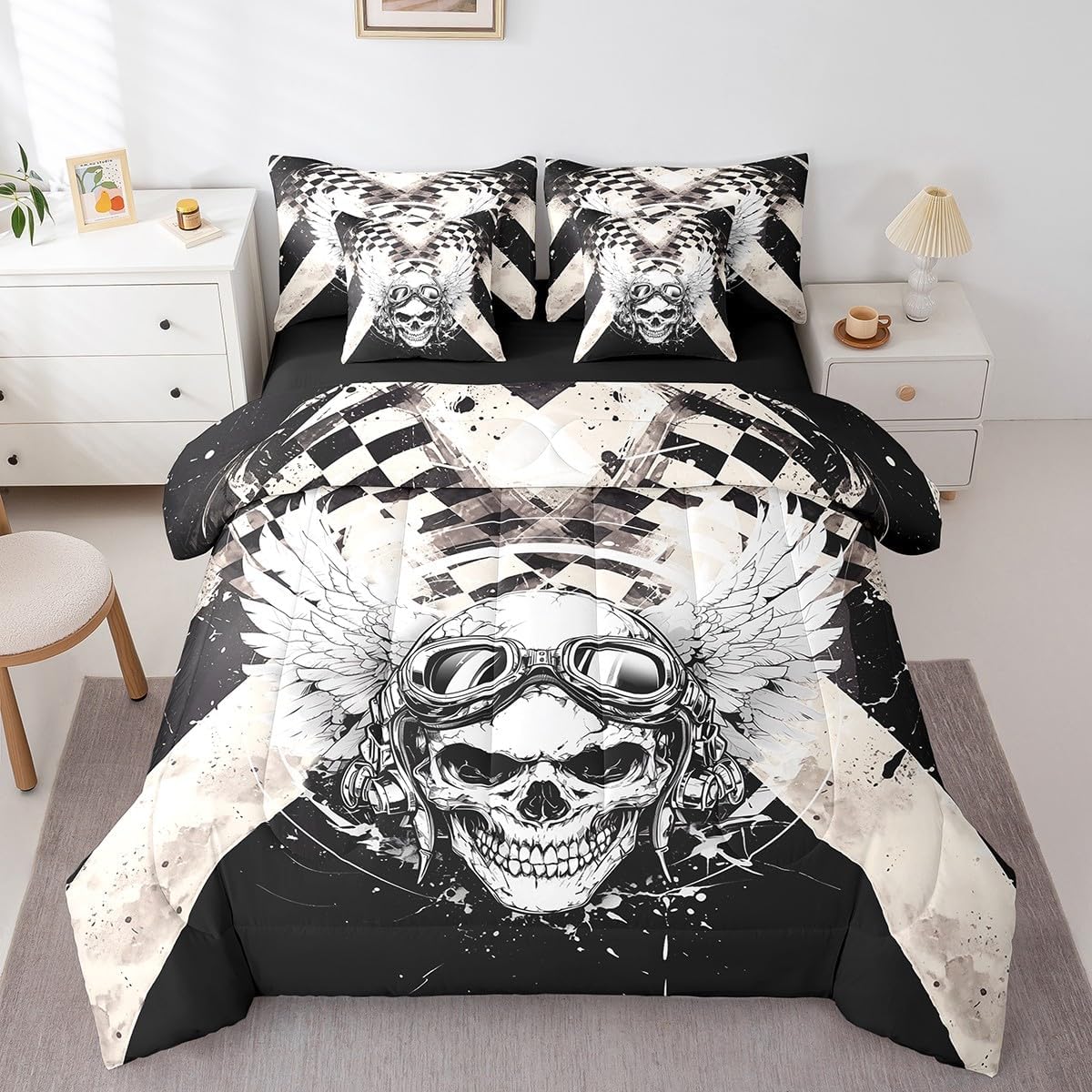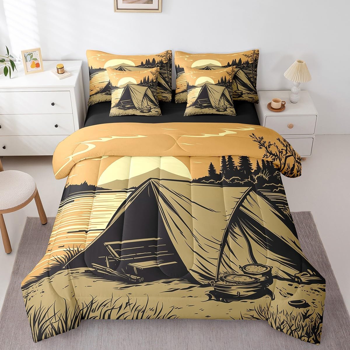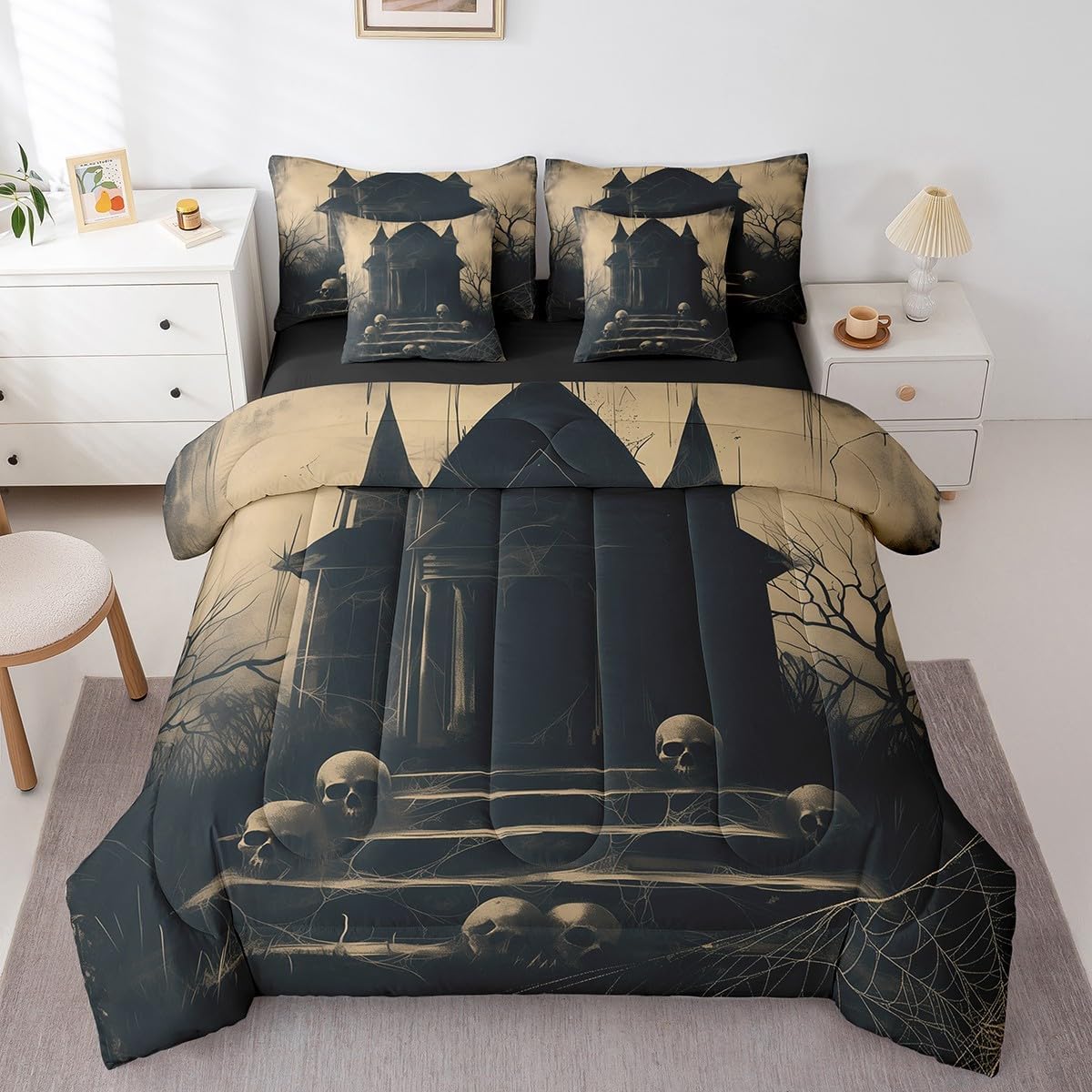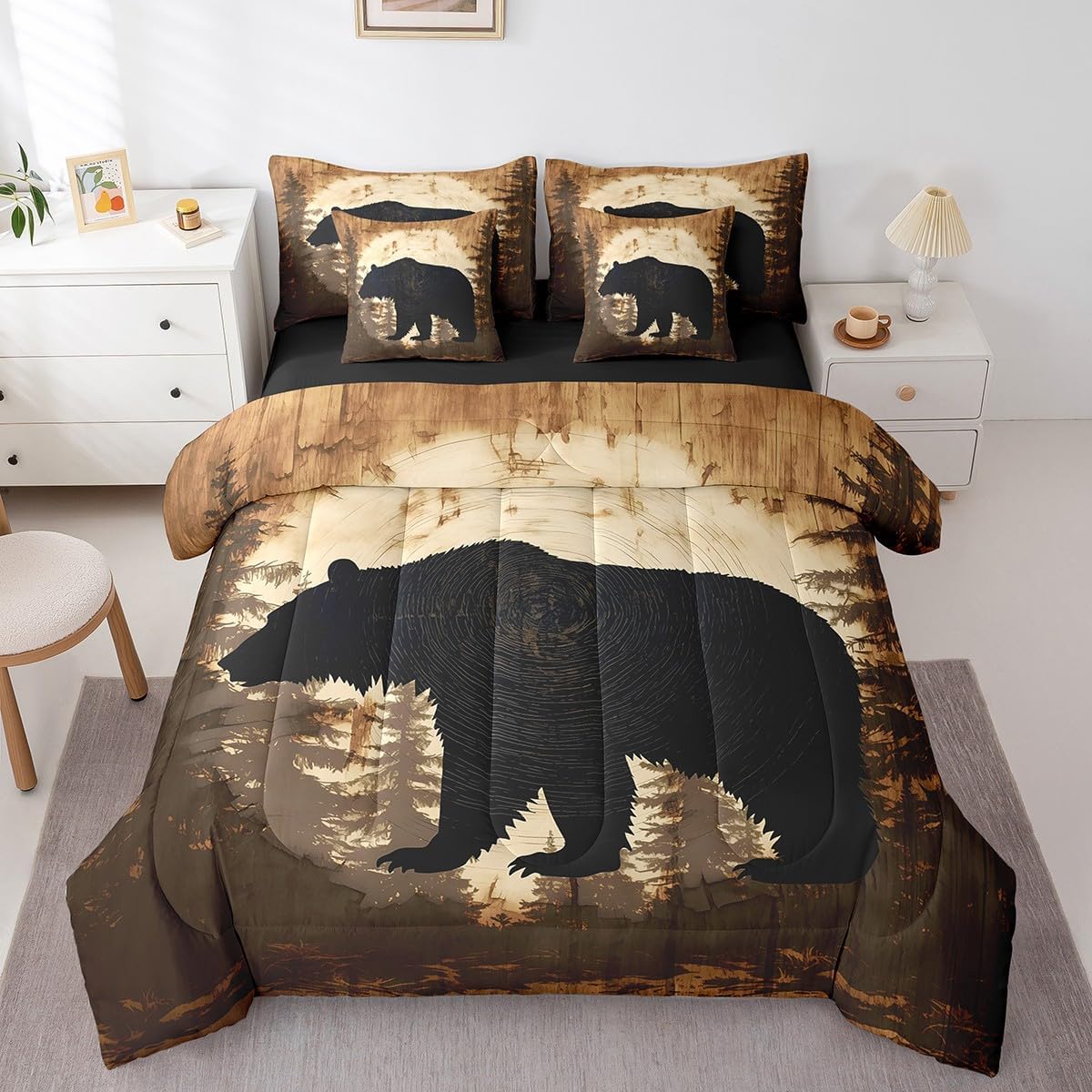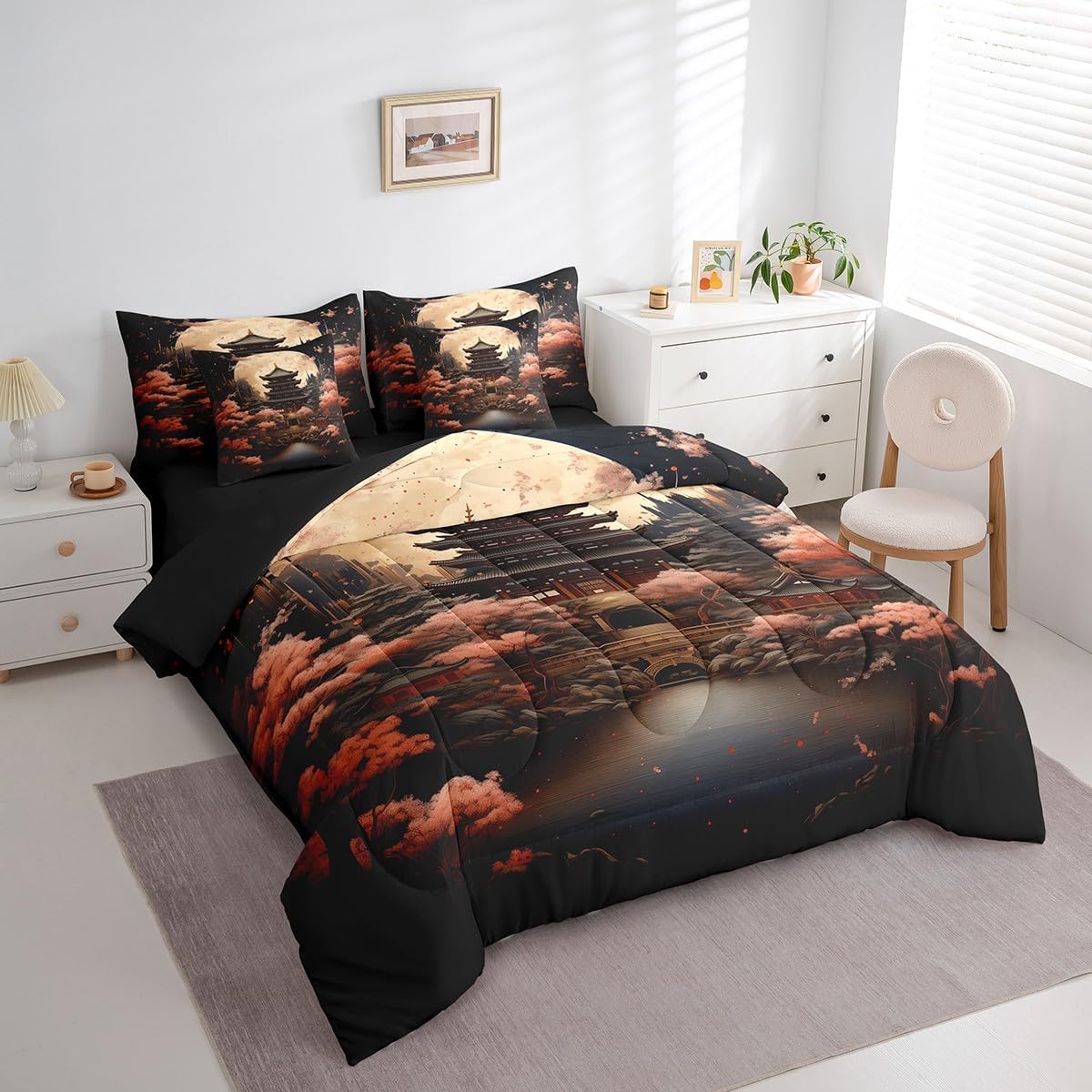 Colorful Makeover to Your Life Various size and color options, there are always decor room. Size Options: 7 Pieces Twin Size,1 Down Comforter 68"x 90", 1 Fitted Sheet 39"x75"x16", 1 Flat Sheet 96"x66", 2 Pillow Cases 30" x 20",2 Throw Pillow Covers,Covers Only. 18"x 18". 7 Pieces Full Size ,1 Down Comforter 79"x 90", 1 Fitted Sheet 54"x75"x16", 1 Flat Sheet 96"x81", 2 Pillow Cases 30" x 20",2 Throw Pillow Covers,Covers Only. 18"x 18". 7 Pieces Queen Size,1 Down Comforter 90"x 90", 1 Fitted Sheet 60"x80"x16", 1 Flat Sheet 102"x90", 2 Pillow Cases 30" x 20",2 Throw Pillow Covers,Covers Only. 18"x 18". 7 Pieces King Size,1 Down Comforter 104"x 90", 1 Fitted Sheet 78"x80"x16", 1 Flat Sheet 106"x90", 2 Pillow Cases 30" x 20",2 Throw Pillow Covers,Covers Only. 18"x 18". Decoration: For your mom, dad, sister, brother, grandma, wife, husband, and all other beloved with many surprising designs. You can find a design for everybody and every interest in our collection. Your Home,You Decide Different types of bedding sets could bring rooms in different styles. Also, rooms in different styles needs different types of bedding sets