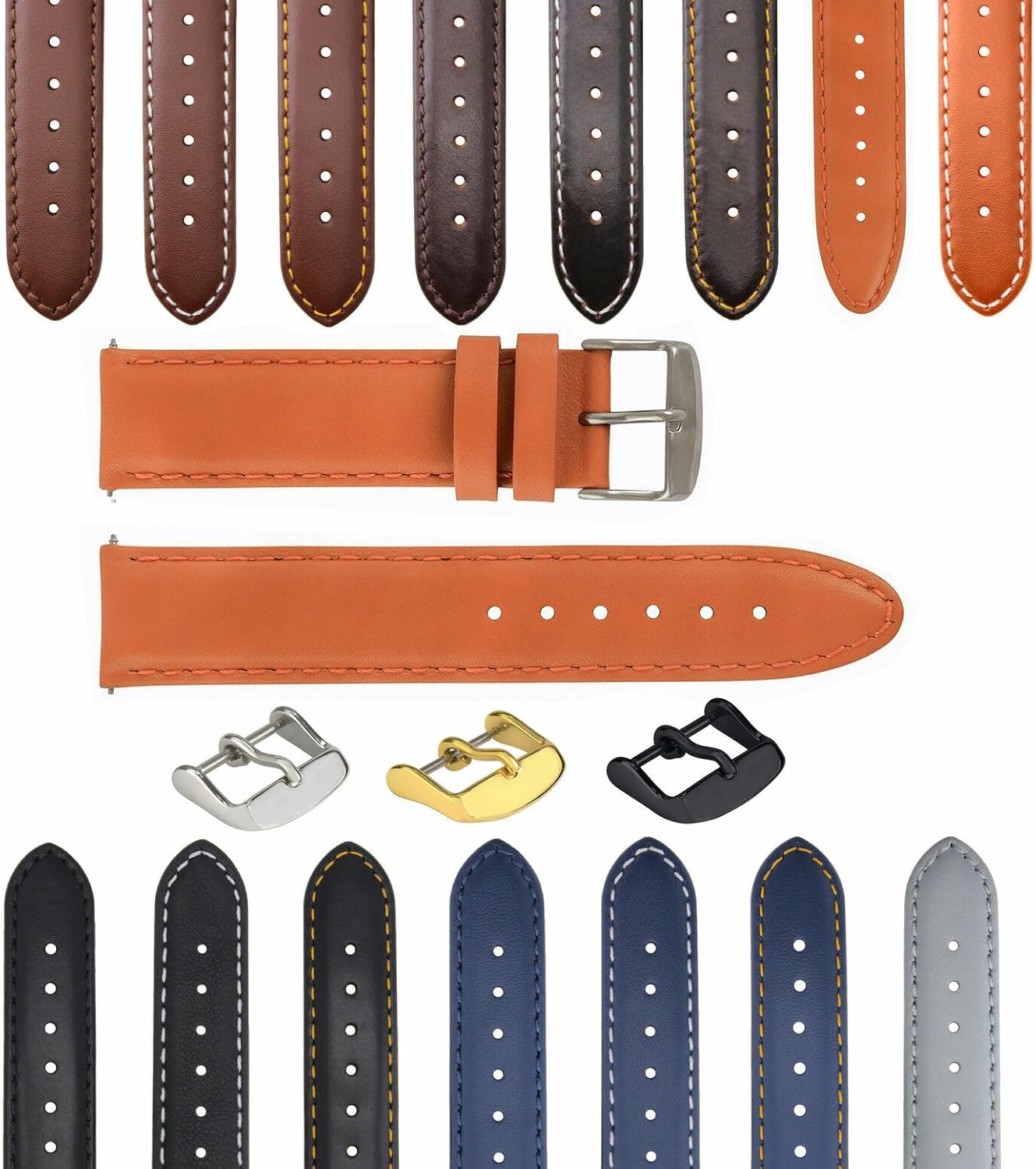 The item for sale is a brand new strap made of calf Real Leather.The strap is waterproof and features detailed thread stitching with thick 4.5mm padding. The back is lined with Real Leather for comfort and a classy look. This strap will make your watch look very expensive.It fits wrists up to 8 to 8 ½ inches.The buckle is interchangeable and made of high-quality 316L stainless steel.Length:Long Part: 115mm (4.6 inch)Short Part: 75mm (3 inch)Compatible With Kenneth ColeAvailable Sizes:18mm19mm20mm22mm24mm26mmAvailable Strap Colors:BlackBlueGreyLight BrownDark BrownOrangeAvailable Buckle Colors:SilverGoldBlackPackage Includes:1 Set (2 pieces) Real Leather Straps1 Buckle (pre-installed)2 Spring bars includedEnsure the strap matches your watch model and lug width before purchase.