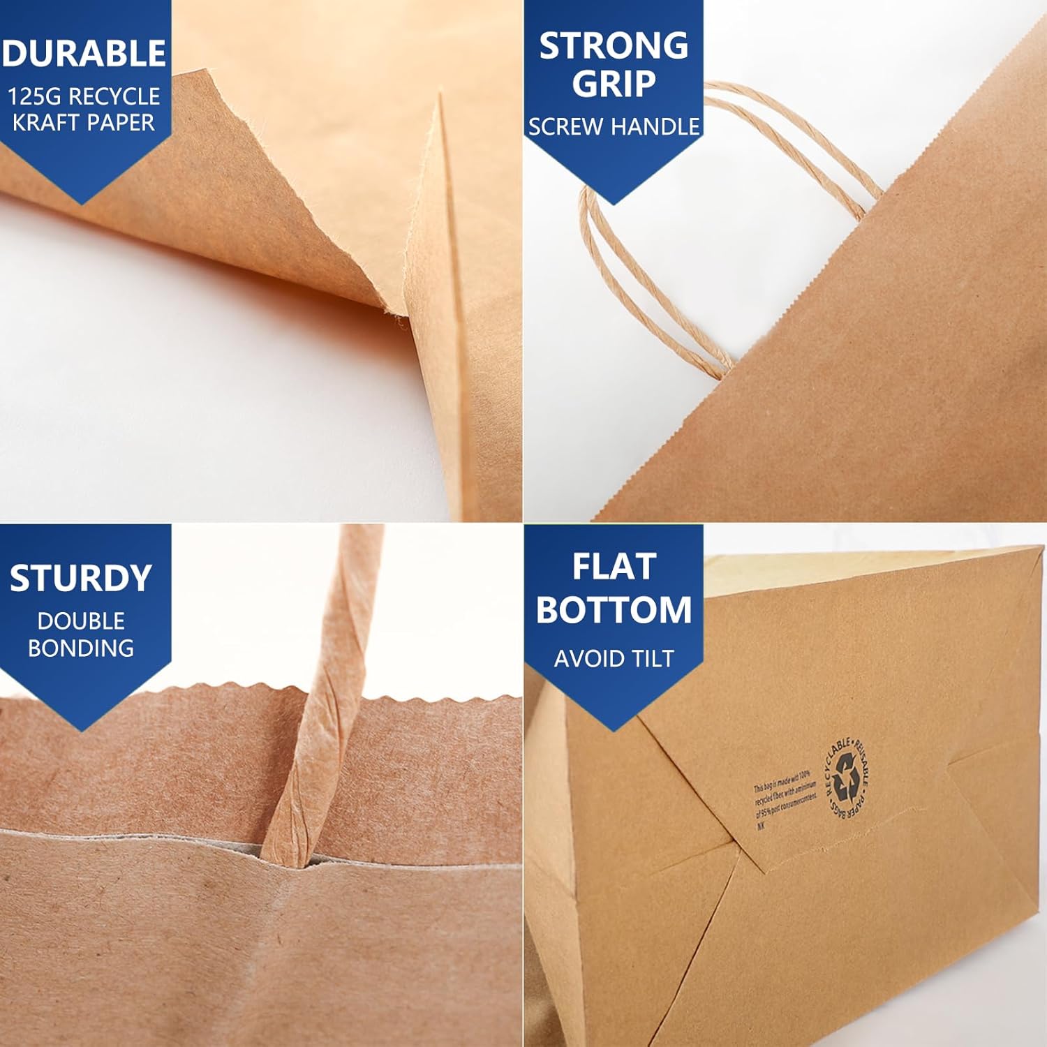 Ezselect Eco Gift Paper Bags with Handles Bulk 100Pcs [13 X 5 X 10In] Extra Thick kraft Goodie Bags for Birthday Party Baby Shower Lunch Shopping Take Out Business Wholesale Retail Brown Paper Bags