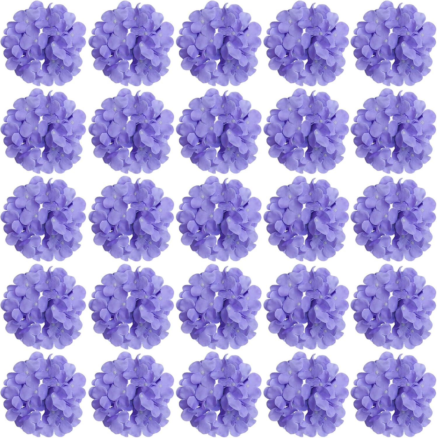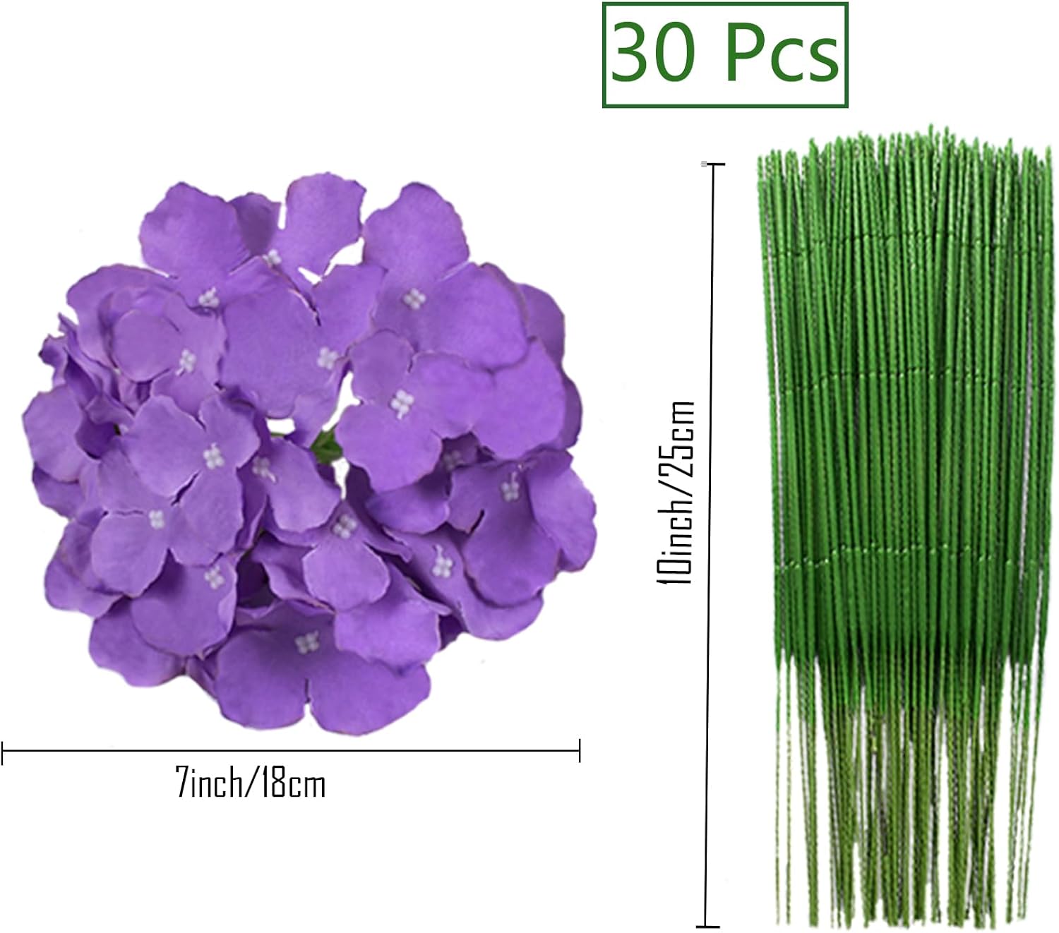 Color:Purple. FagusHome 30 PCS Artificial Silk Hydrangea Heads Size:Hydrangea Heads diameter:7inch/18cm;stem length:10inch/25cm. Material:silk fabrics+ plastic; Packing: 30 Pcs hydrangea flower heads,with 30 Pcs stems. Q&A Why choose artificial flowers? Silk fake flowers not only have the beautiful appearance of flowers,but also last longer life time than fresh flowers. They stay as beautiful as the day you get them. If you use fresh flowers on a big party or wedding will be very expensive, but use artificial flowers will save a lot. Note: Due to long-distance transportation, the flowers will be deformed by squeezing. You can easily bring them back into shape with a hair dryer.