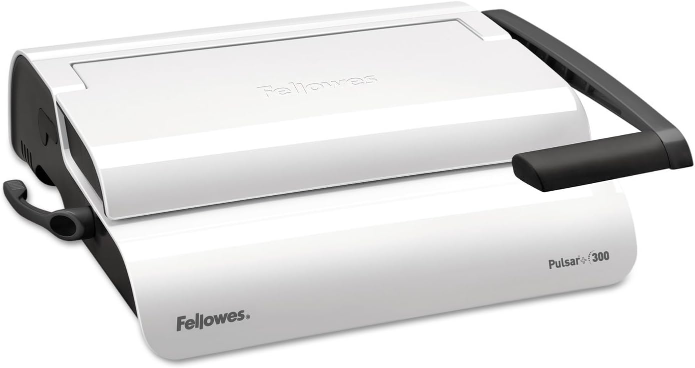 Designed for moderate use in small to mid-sized offices. Allows user to punch and bind continuously for maximum productivity. Binds up to 300 sheets with a 1 1/2" comb. Vertical document loading ensures accurate punch alignment. Features built-in comb storage tray with document measurement device for added convenience and quick set-up. Enhanced accuracy edge guide for pinpoint punch alignment. Includes binding starter pack.