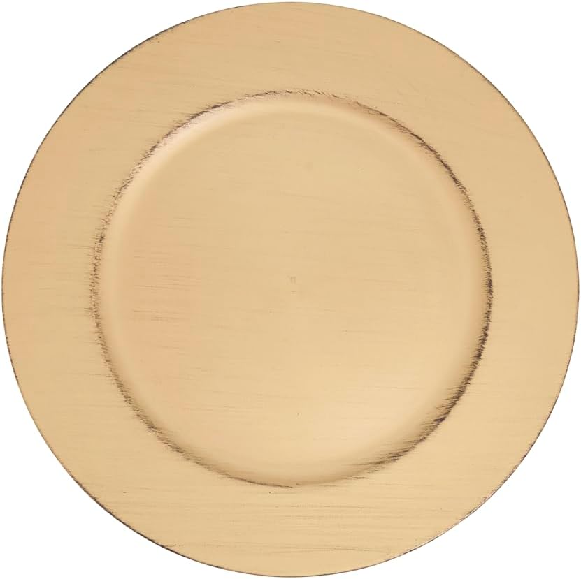 Elevate your table setting with the timeless elegance of our Brushed Design Gold Charger Plates. This 13-inch round charger plate features a sleek brushed gold finish that adds a touch of sophistication to any dining occasion, perfect for weddings, banquets, holiday dinners, or upscale everyday use.