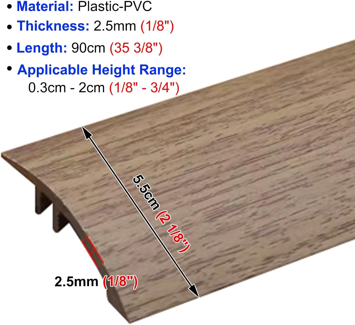 Our edging strips provide convenience for you and your family and are the choice to create beauty and provide safety. Package Contents: - 1 x Floor Divider Strip Specifications: - Material: Plastic-PVC - Length: 90 cm (35 3/8 inch) - Width: 5.5 cm (2 1/8 inch) - Thicknesses: 2.5 mm (1/8 inch) - Applicable Height Range: 0.3 cm -2 cm (1/8 inch-3/4 inch) Features: - The wood grain design decorates the space. - Sturdy and durable, suitable for long-term use. - Easy to clean and maintain, no fading. - Cut threshold with a sawblade to the desired length. - It seamlessly blends in with any decor style, and there will be no abrupt feelings. - Providing a smooth transition between different flooring materials for wheelchairs. Please Note: - In manual measurement, there will be errors, depending on the actual size. Thank you for your understanding. - Due to the differences in light and screen, there may be a slight color difference between pictures and items.