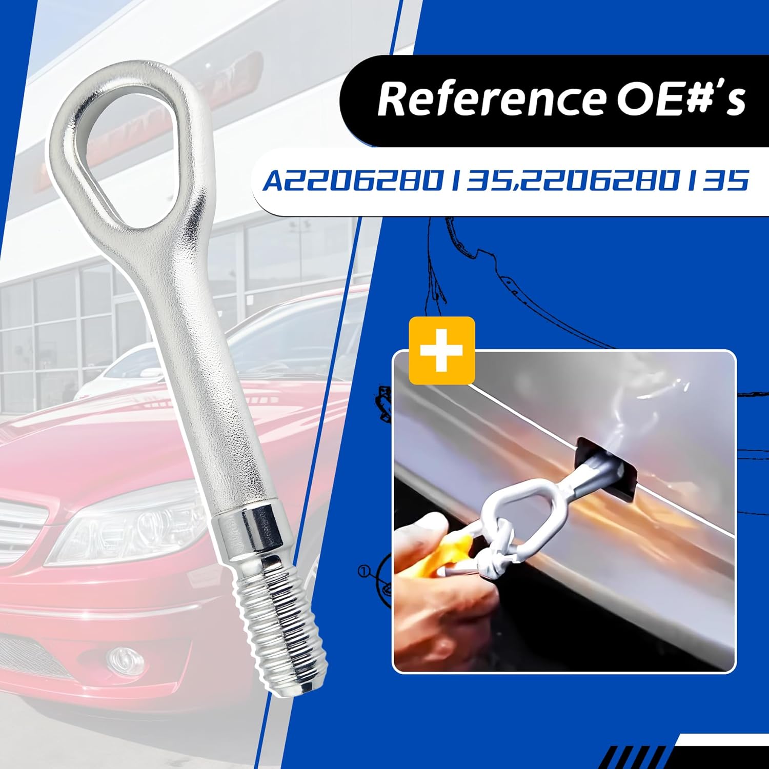 Reference #'s A2206280135 2206280135 Package Includes: 1 x Tow hook Compatible with Benz Tow hook: For A-class W169 (2004-2012) For B-class W245 (2005-2011) For C-class W203 sport coupe (2001-2008) For C-class W203 (2000-2007) For CLK C209/A209 (2002-2010) For CLS W219 (2004-2011) For E-class W210 (1995-2002) For E-class W211 (2002-2009) For S-class W220 (1998.10-2005.8) For SL R230 (2001-2011.12) For SLK R170 (1996-2004) For SLK R171 (2004.11-2011.3) For Vaneo (2002-2005) For CL C215 (1999-2006) For CLC (2008.5-2011)