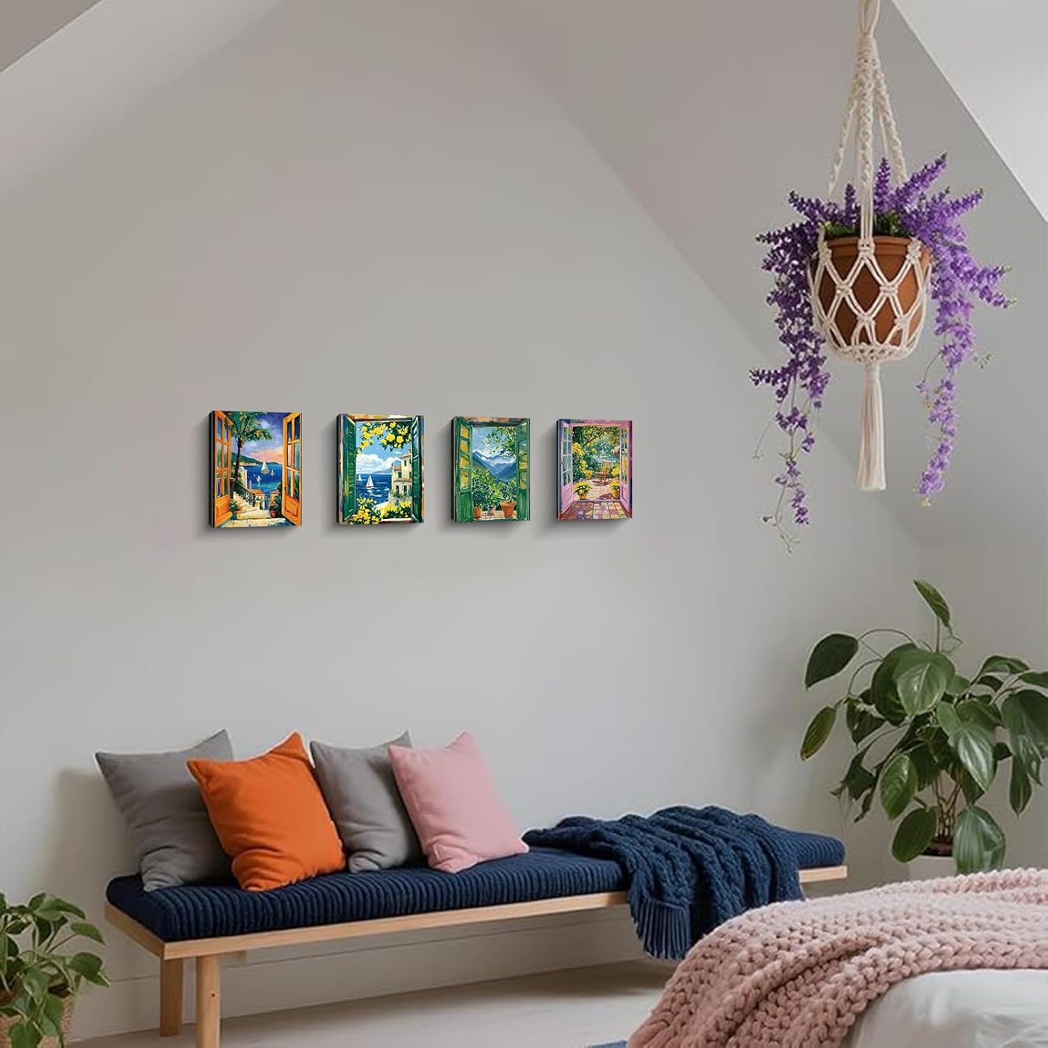 Elevate your space with this 4 Piece Framed Open Window Canvas Wall Art Set! Each 8x10-inch print arrives in a frame, ready to hang and showcase enchanting “open window” views of nature's beauty—from vibrant garden blooms and tranquil seaside scenes to picturesque countryside fields and lush floral arrangements. The colorful, artistic renderings blur the line between art and reality, inviting outdoor serenity into your home. Perfect for adding whimsy, depth, and natural charm to living rooms, bedrooms, offices, or any area needing a decor refresh.