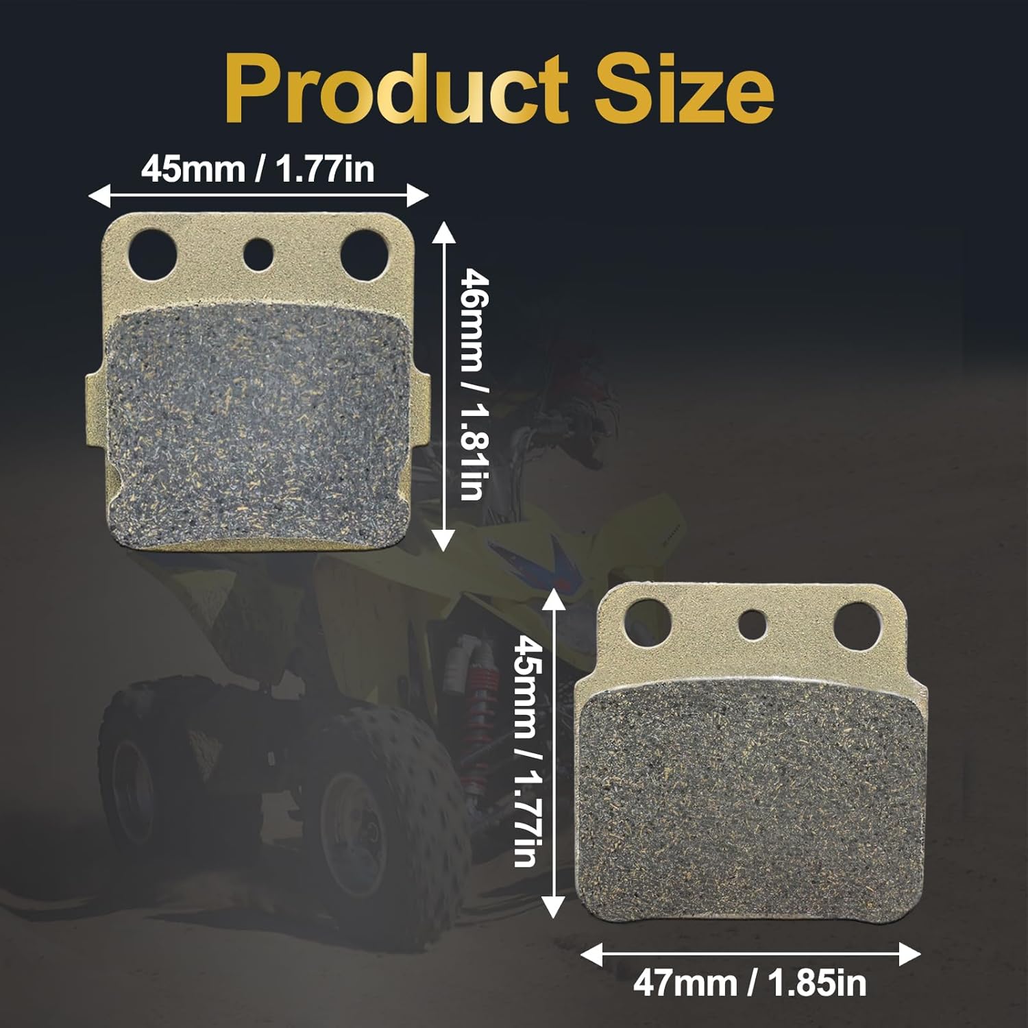 Our semi-metallic brake pads offer exceptional stopping power, long service life, and reliable performance. Outstanding for racing, touring, mountain rides, off-road adventures and city commuting, they provide consistent braking, improved wet-condition performance, and heat resistance for enhanced safety and longitivity. ------ 【Heat Resistance】:Withstands high temperatures without fading, ensuring consistent braking performance even during intense use. 【Long-Lasting】:Designed to resist wear and tear, providing a longer service life compared to standard brake pads. 【Reliable Performance】:Maintain consistent braking efficienc in extreme conditions, such as downhill rides or heavy loads. 【Quieter Operation】:Engineered to minimize noise and vibration, delivering a smoother and more comfortable ride. 【Reduced Brake Fade】:Prevent loss of braking power under prolonged heat exposure, ensuring safety and control. 【Improved Safety】:Offers stable and predictable braking performance, even in high-temperature environments like racing or mountain adventures. 【Efficient Heat Dissipation】: Effectively manages heat buildup, reducing the risk of overheating and brake system damage. 【Affordability】: Semi-metallic brake pads are generally more affordable than ceramic or carbon fiber brake pads, making them a cost-effective option for many vehicles. ------ 【Fit For/Compatible with】: 2003-2015 LT-Z 400 K3/K4/K5/K6/K7/K8/K9/L0/L1/L2/L3 KFX 400 2003-2006DVX 400 Sport 2004-2008 Package Include: 3 Pairs of Pads(6 Pieces Total)