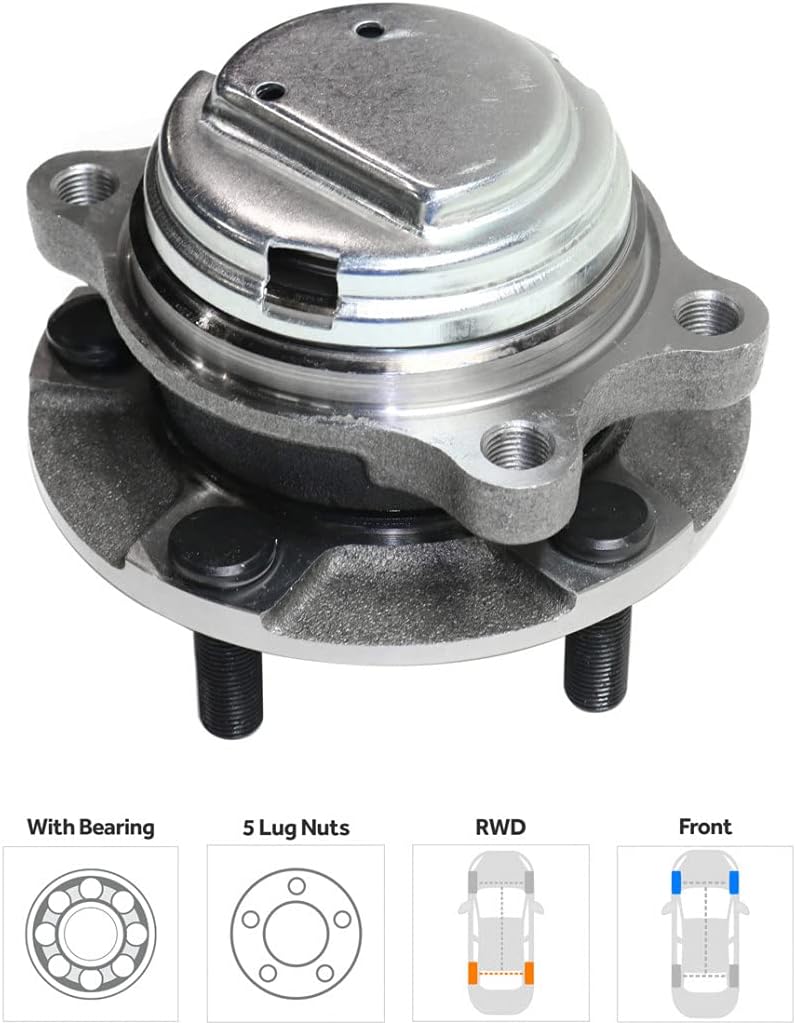 Product Info:- M35 06-10 / G35 07-08 / G37 08-13 / Q50 14-18 Front Hub Assembly, Rh=Lh, Rwd- Brand: Karparts360- Part: Wheel Hub- Position: Front, Driver Or Passenger Side- Product Fit: Direct Fit- Bearing Included: Bearing Not Included- Includes: Abs Encoder, Wheel Studs- Numberof Lugs: 5 Lugs- Notes: 5 X 4.5 Inch Bolt Pattern; M12 X 1.25 Inch Bolt Size; 2.68 Inch Brake Pilot Diameter; 5.35 Inch Flange Diameter; 1.61 Inch Flange Offset; 4-Bolt Modified Flange; 3.66 Inch Hub Pilot Diameter; M12 X 1.25 Inch Stud Size; 2.6 Inch Wheel Pilot Diameter- Driven: Non-DrivenInterchange Part Number: - Oem Number: 402024Ga0aAftermarket Replacement Parts:Each Component Undergoes Comprehensive Evaluation To Meet Our Safety Standards And High-Quality Criteria, Ensuring It Meets Oem Specifications.Built For Durability:Made From High-Quality Materials, This Product Has Been To Ensure Long-Lasting Performance.Please Confirm That The Oem # Or Partslink # Matches Exactly Before Purchasing To Ensure Proper Fitment.