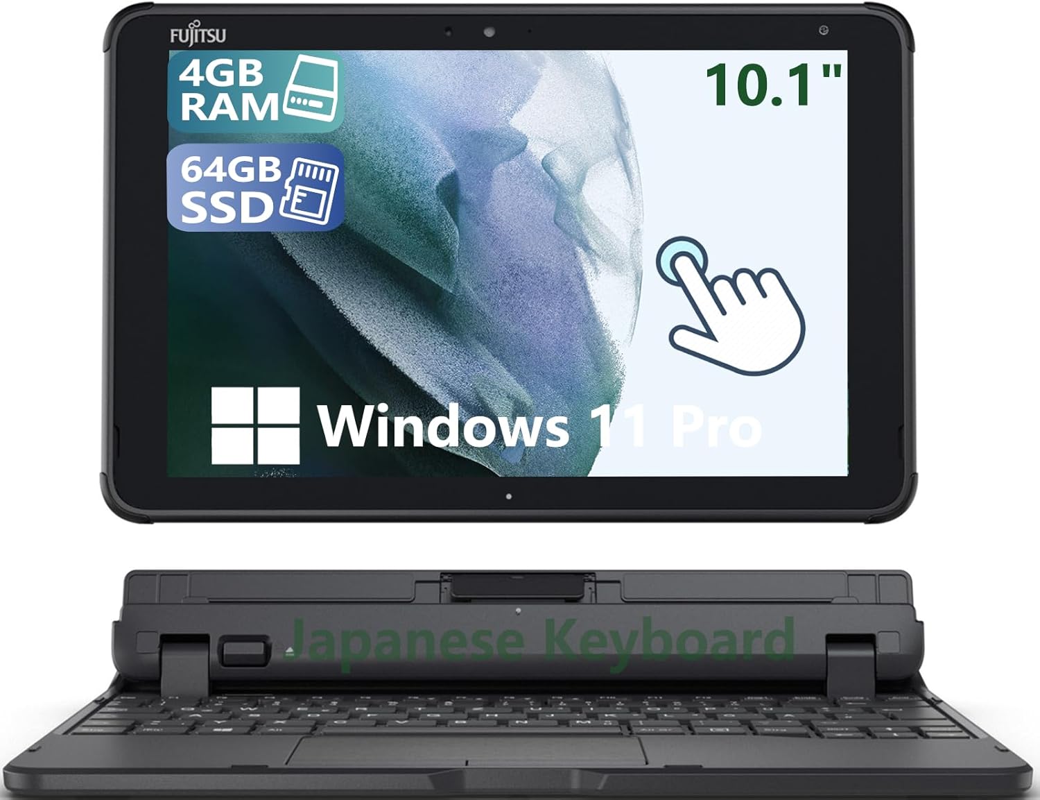 Key Features of this Fujitsu Stylistic Q5010 Touchscreen Tablet PC(Renewed)● Operating system : Windows 11 Pro● Memory: 4GB RAM● Hard Drive : 64GB SSD● Processor type: Intel Celeron N4020 1.1GHz, Up to 2.8GHz● Processor speed: 2 cores, 2 threads, 4MB cache●Touchscreen:Yes● Fingerprint:NO● Keyboard language: Japanese● Ports:1 x USB Type‑A 3.2 Gen 1 (5 Gbps)1 x USB Type‑C 3.2 Gen 2 (10 Gbps)1 x 3.5mm Headphone/Microphone Combo Port1 x MicroSDXC Card Reader1 x DC Power InputIncludes:1 x Fujitsu Stylistic Q5010 Touchscreen Tablet (Renewed)1 x AC Adapter