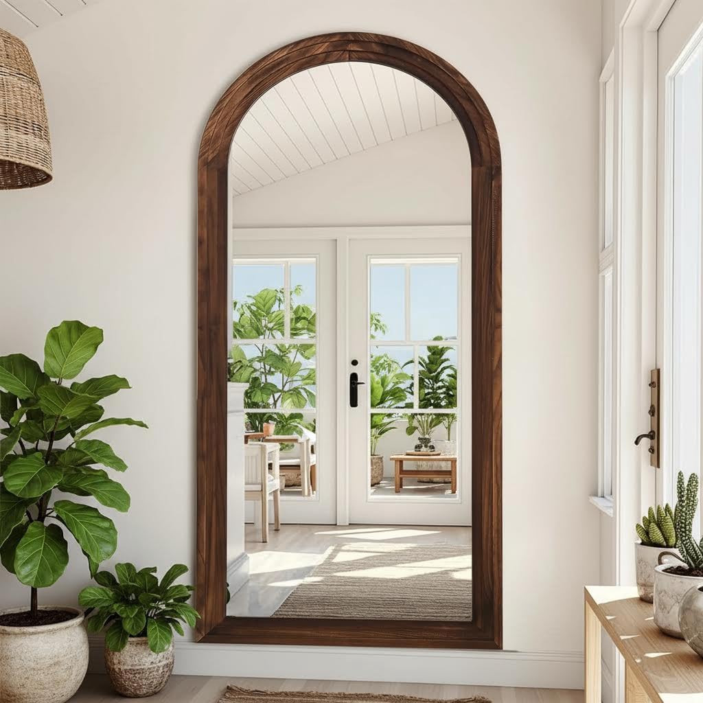 • ✔【DESIGN】The floor mirror has an arched top. The mirror is made of pure natural wood material, each mirror is unique. It is very conspicuous in any space and makes your room look classy.