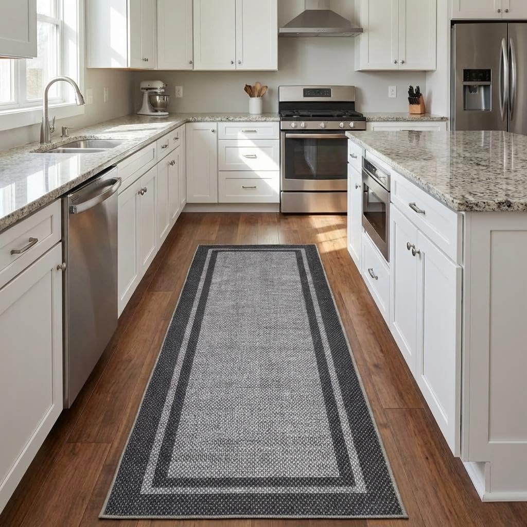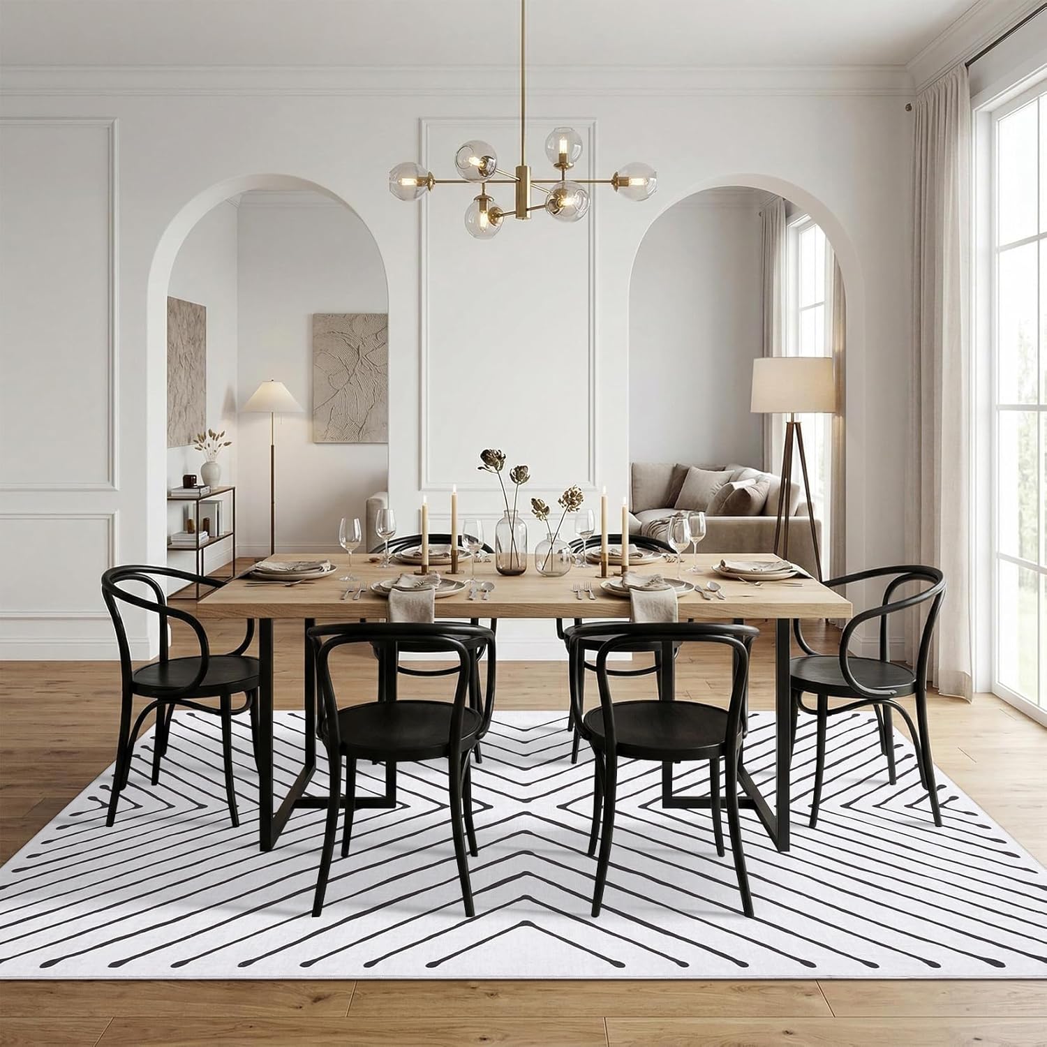 Transform your space effortlessly with this modern bordered rug - combining minimalist elegance, barefoot comfort and practical features like machine-washable convenience and non-slip safety in one stylish floor accent that works anywhere.Highlights at a glance:Sleek minimalist design with clean bordered accentsSecure TPR backing prevents slips and slidesPlush barefoot-friendly texture stays comfy all dayUltra-thin profile glides under doors and furnitureMachine-washable convenience for effortless careTight woven construction resists shedding and fadingFolds compactly for easy storage and movingNeutral tones blend seamlessly with any decorLow-maintenance vacuum-friendly surfaceDurable edges withstand daily foot trafficSpecification:Size: 2x6 / 5x7 / 6x9 / 8x10 / 9x12 / 10x13 ftColor: beige / green / brown / blackMaterial: polyester fibre+textured TPRApplication: living room/bedroom/dining room/entryway/kids room/playroom/office/kitchen/farmhouse/floor/hallway/laundryFriendly note:Upon receiving the modern area rug, please unfold it. Initial creases may appear, but don't worry; they will smooth out after a few days.Due to color variations under different lighting conditions, the area rug may show slight differences in shade. Thank you for your understanding and support!Care instructions:Can be hand washed or machine washed in cold water.Recommend spot cleaning for minor spills.Support vacuum cleaner and robot vacuum.Use mild detergent.Packing list:1x Area rug