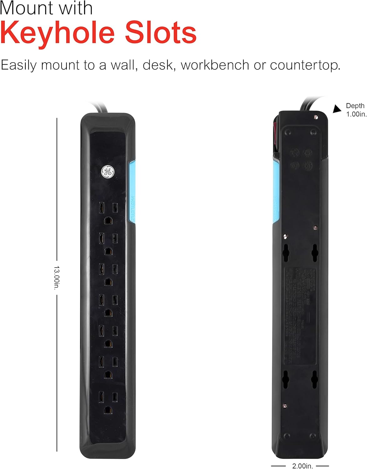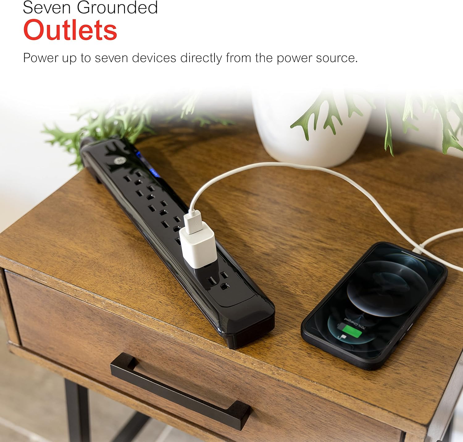 Add versatility to your electrical outlets while protecting your household electronics with the GE Ultrapure 7 outlet surge protector. Converting one grounded outlet into seven, the adapter adds more outlets where you need them most and keeps your electronics protected from dangerous power surges. The surge protector Features an integrated circuit breaker and automatic shutdown technology that protects your electronics if the capacity is exceeded by a power surge or the components expire. The surge protector Features an 4 Ft. Low profile plug cord. It also features a 1080 joules protection rating and a protected indicator light that shows the surge protector is working properly. For use in grounded (three-prong) outlets only. This product comes equipped with connected equipment and is backed by a lifetime.