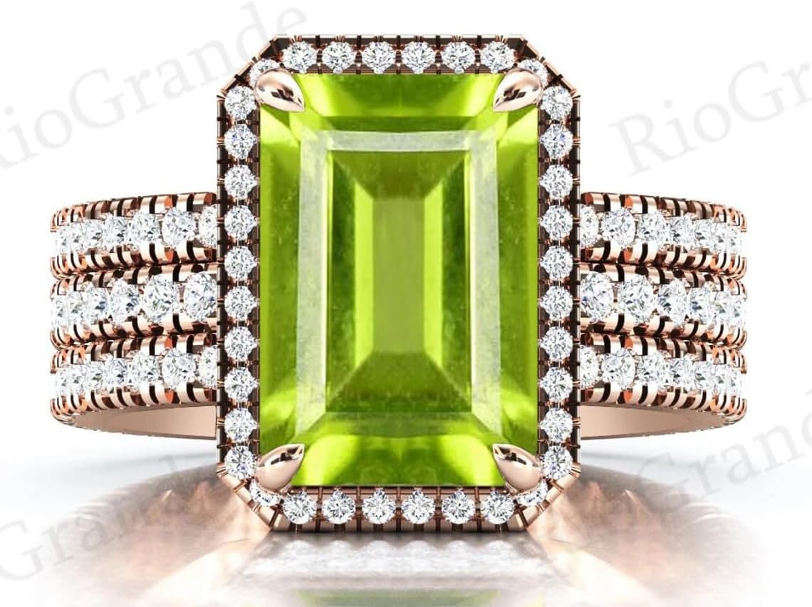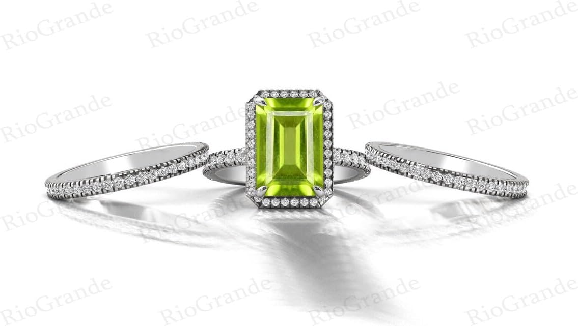 | Warranty Description | Vintage 3.5 Peridot Engagement Ring Set 14k Gold Peridot Wedding Ring Set Unique Art Deco Bridal Ring Set Antique Anniversary Ring Promise Ring |