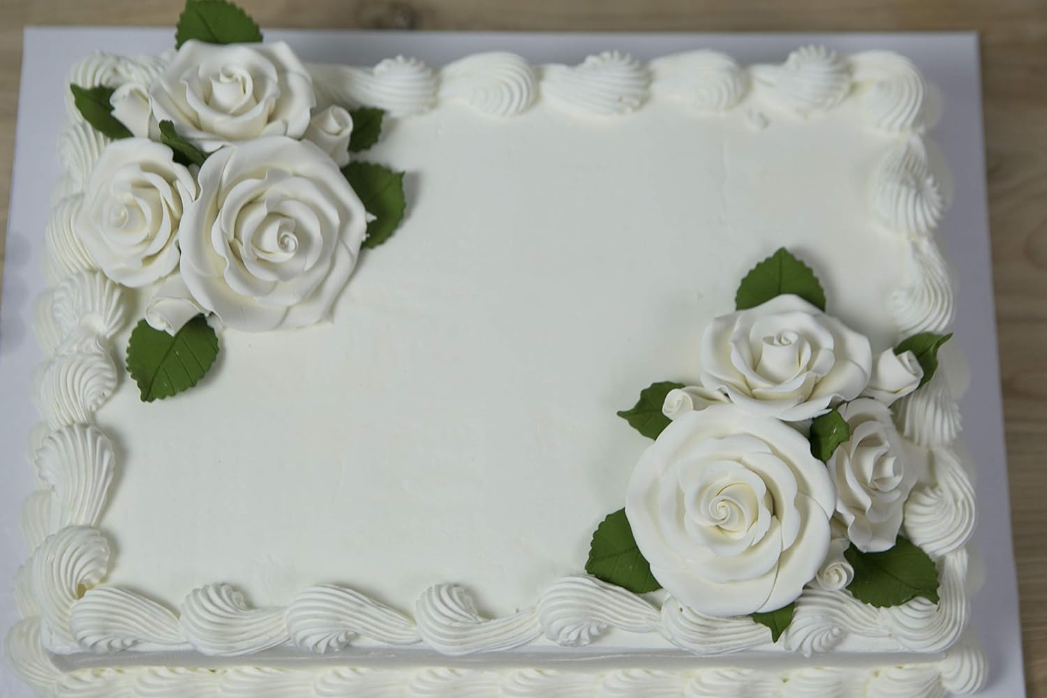 Global Sugar Art Exquisite Edible Rose & Leaf Sugar Flowers Tray White, Unwired by Chef Alan Tetreault.This tray contains multiple sizes of roses and leaves to decorate your cake or cupcake. Handmade from gumpaste, these beautiful flowers allow beginners or professional decorators alike to achieve wonderful results. These flowers are white, are unwired and have no calyx. They may be further colored with dusts or air brushing. The flowers measures approximately: Large, 2-3/4 inches in diameter, Medium, 2-1/4 inches in diameter, Small, 1-3/4 inches, Rosebuds with leaves, 7/8 inches in diameter. Tray of 5 large roses, 3 medium roses, 4 small roses and 8 rosebuds (Total, 20 roses) and 20 small leaves, 15 medium leaves, and 10 large leaves (Total, 45 leaves). Food safe and edible but not recommended to be eaten as they are very hard.Gumpaste flowers are brittle and easily damaged in shipping. While we do our best to pack them for you, some breakage is inevitable. Please order extra to insure you have enough. Size, shape and color of flowers may vary.Certified Kosher Pareve by Star-K.