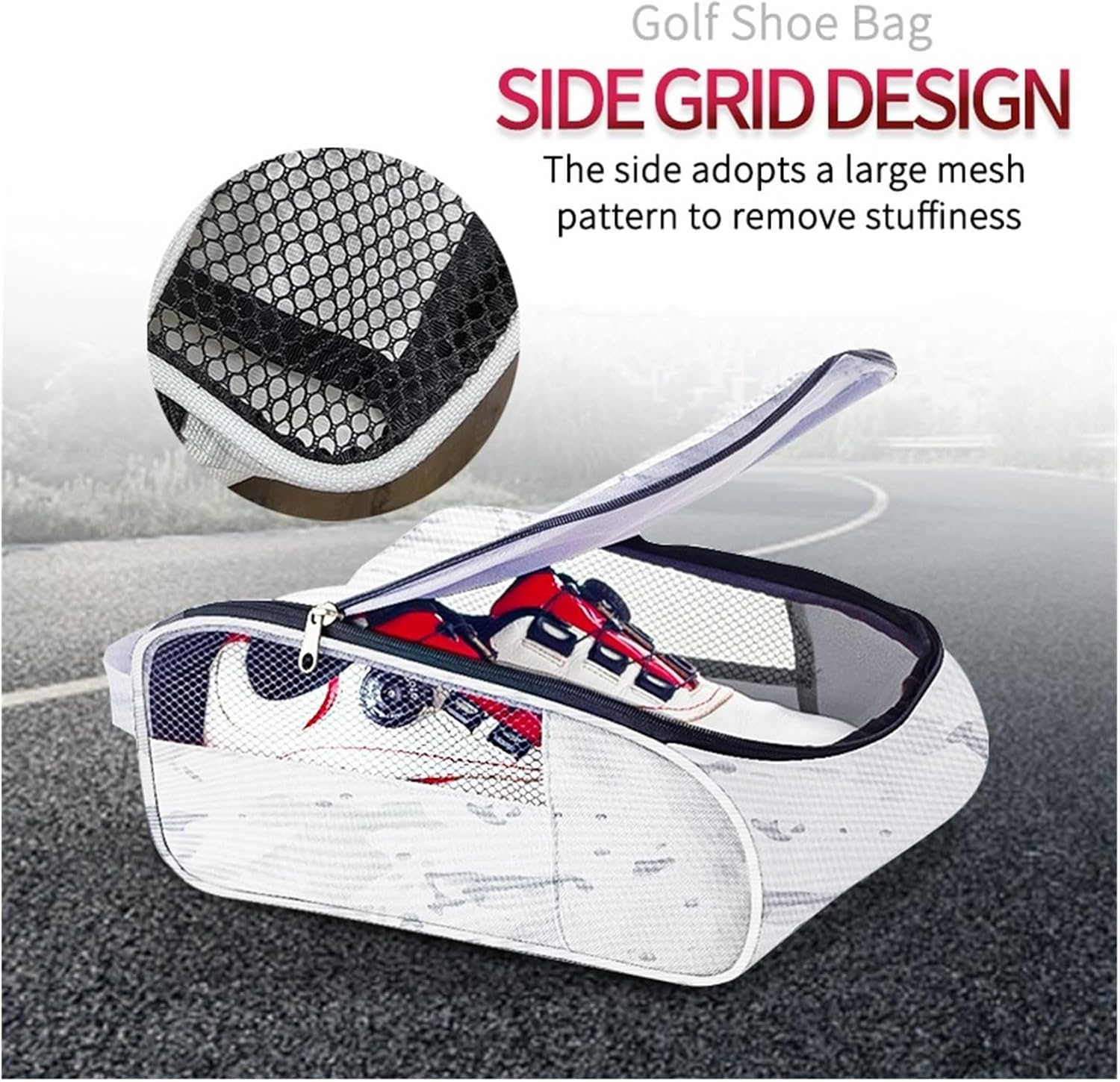 1.Shoe bag has a handle on top for your convenience. This makes it easy to store their shoes in luggage,on a closet shelf.2.Shoe bags have a top mesh panel that keeps small, medium, and large contaminants from transferring inside your wheeled suitcase,or purse.3.Avoid Smelly Shoes:Shoe bags offer air flow to prevent odors. 4.Protect your shoes,keep them from scratching or rubbing against the other.5.Made of polyester material,lightweight.6.Smooth zipper teeth,makes it easy to get items in and out.Notice:Actual color may be slightly different from the image due to different monitor and light effectSpecification:Material:PolyesterSize:Length:34cm Width:23cm Height:14cm