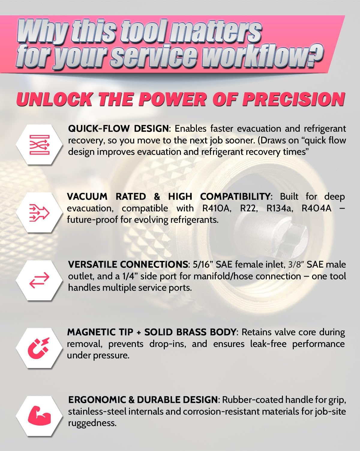 | Included Components | 1 Valve core removal tool |